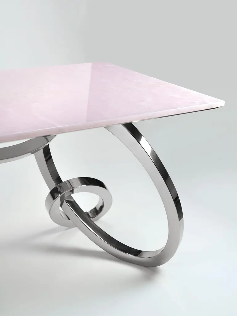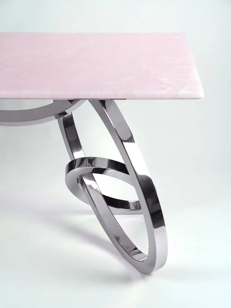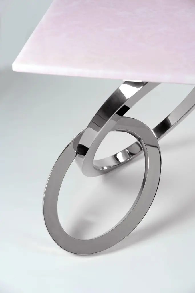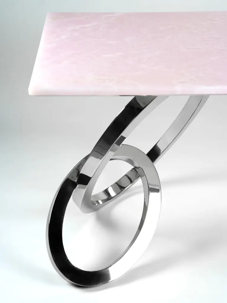 Desk Table Home Office Pink Onyx Mirror Polished Steel Collectible Design Italy