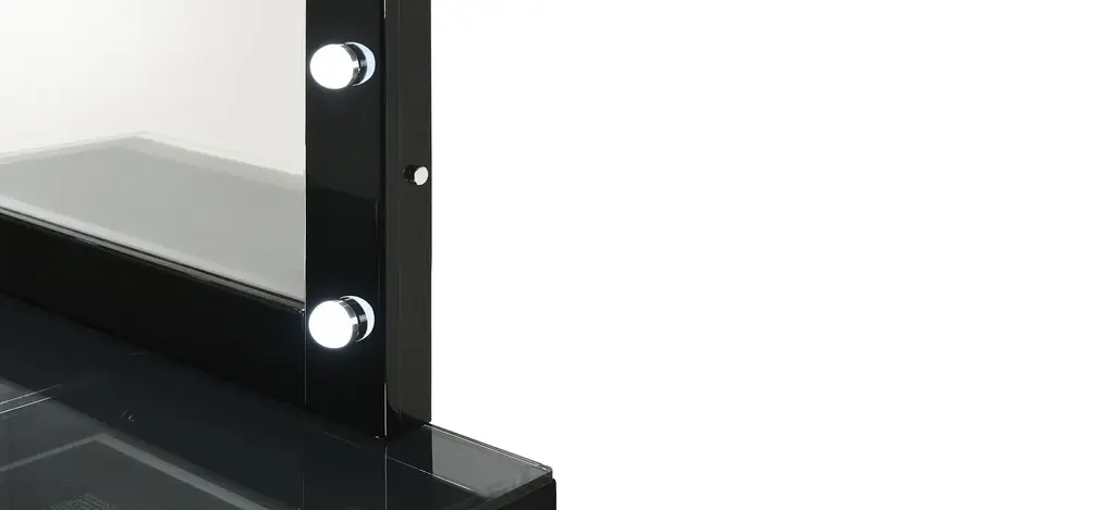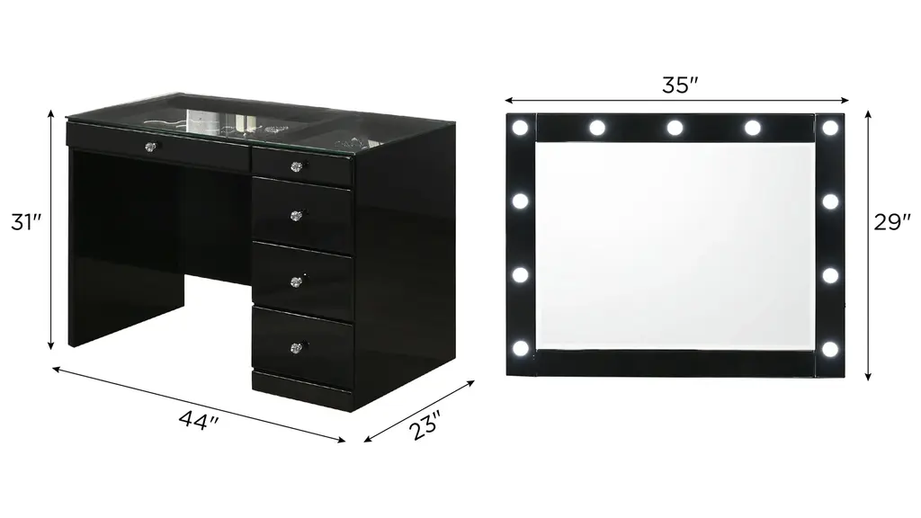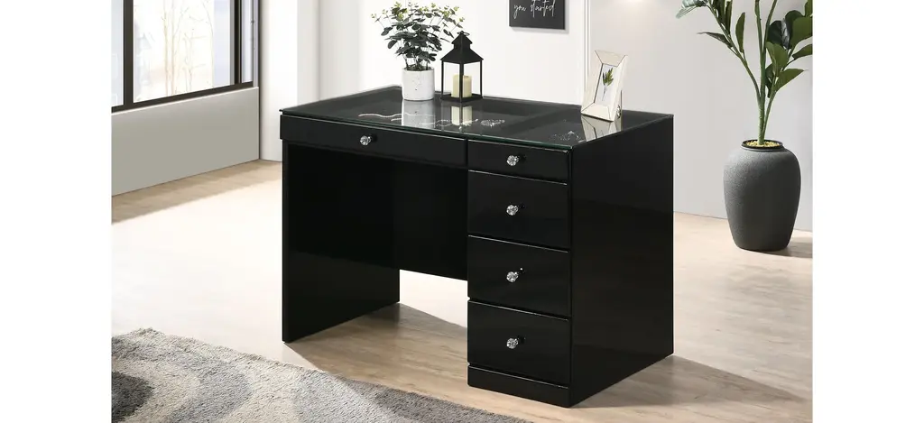 Diem Small Vanity Table w/ Mirror features a glass top that makes for easy viewing of the first row of drawers. The full extension drawers allow for easy access for all your supplies. Whatever your need, this desk will be with you for years to come.