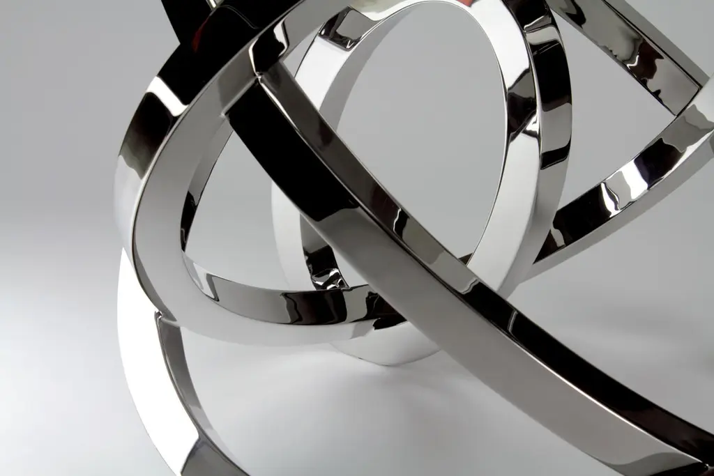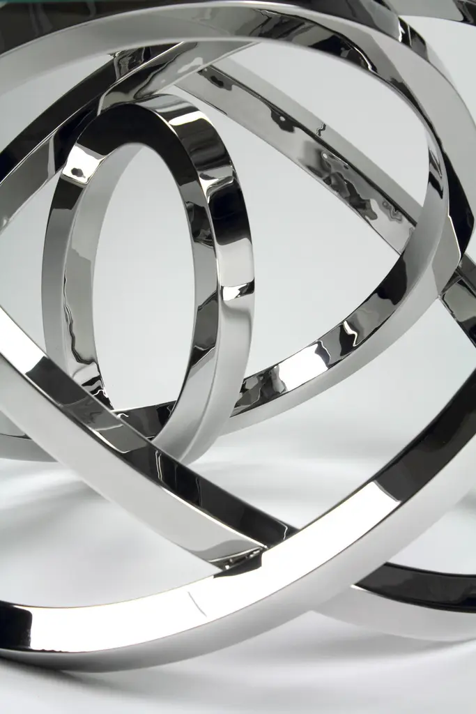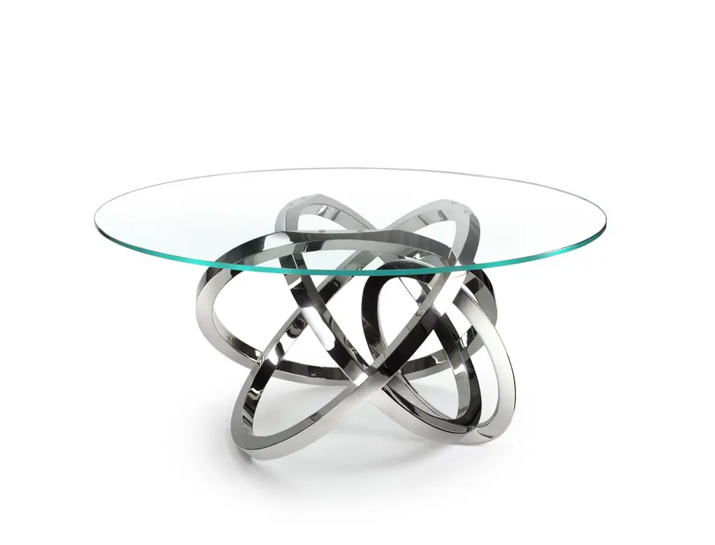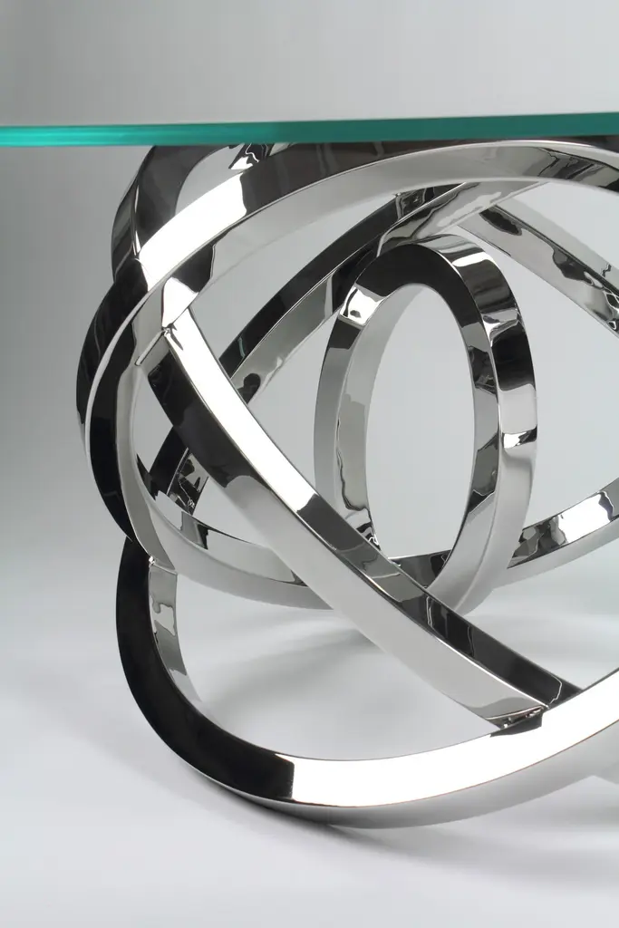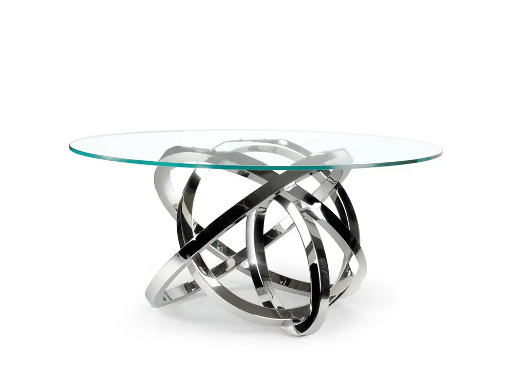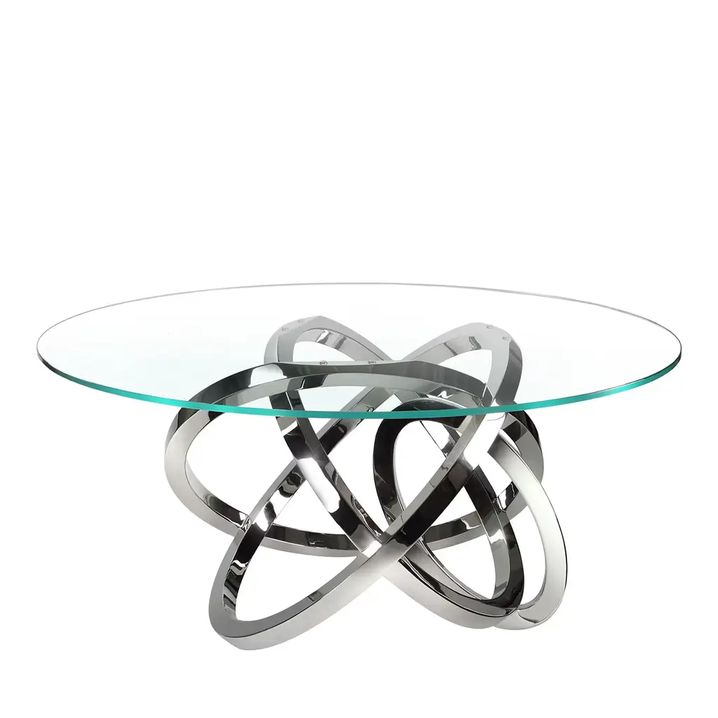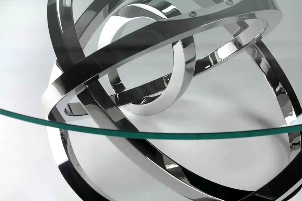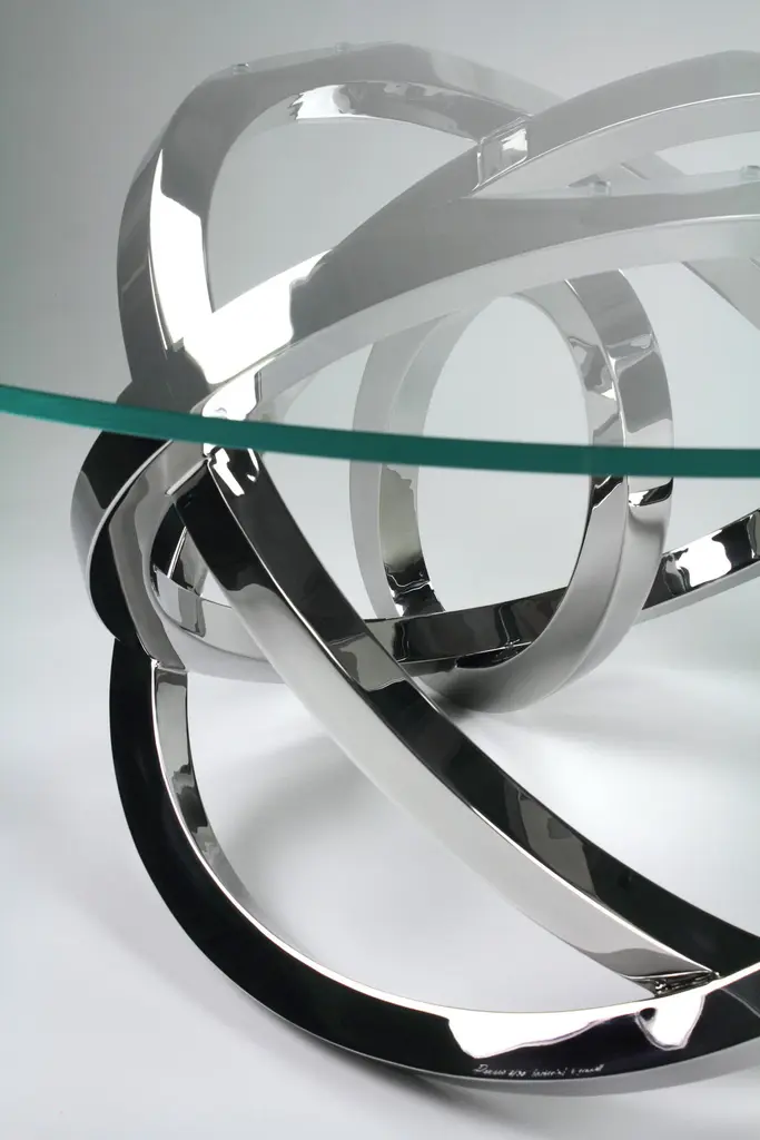 The dining table 'Perseo' is an eye-catching table with structure in mirror polished stainless steel and top in extra-clear tempered glass. Every single bangle is welded and highly polished by hand. The mirror-like finishing of the steel creates different perceptions of this particular material and allows interesting reflections of light. Dining table dimensions: D 160, H 75 cm. Dimensions are customizable.Limited Edition of 30.Each table is hand signed and numbered by the artists (engraved), 100% handmade in Italy and comes with a "Certificate of Authenticity."The artworks by Barberini & Gunnell are regularly shown at international art fairs, such as PAD London, PAD Genève, PAD Monaco, Salon Art + Design New York, ArtMiami.IMPORTANT INFORMATION REGARDING SHIPPING:Please contact us for an independent shipping quote as we provide high quality shipping at competitive prices due to our frequency of shipping, relations with international shipping companies and the possibility to organize directly from Italy.We take care of the entire customs procedure and paperwork. On request we organize a white glove delivery and installation of the artwork inside of the property of the client. All shipments are ALL-RISK insured.We carefully pack all artworks in strong wooden crates to ensure safe transport. This service is done directly in our atelier and is complimentary. All of our artworks travel with a shock watch system in order to monitorate rough handling by shippers and movers.