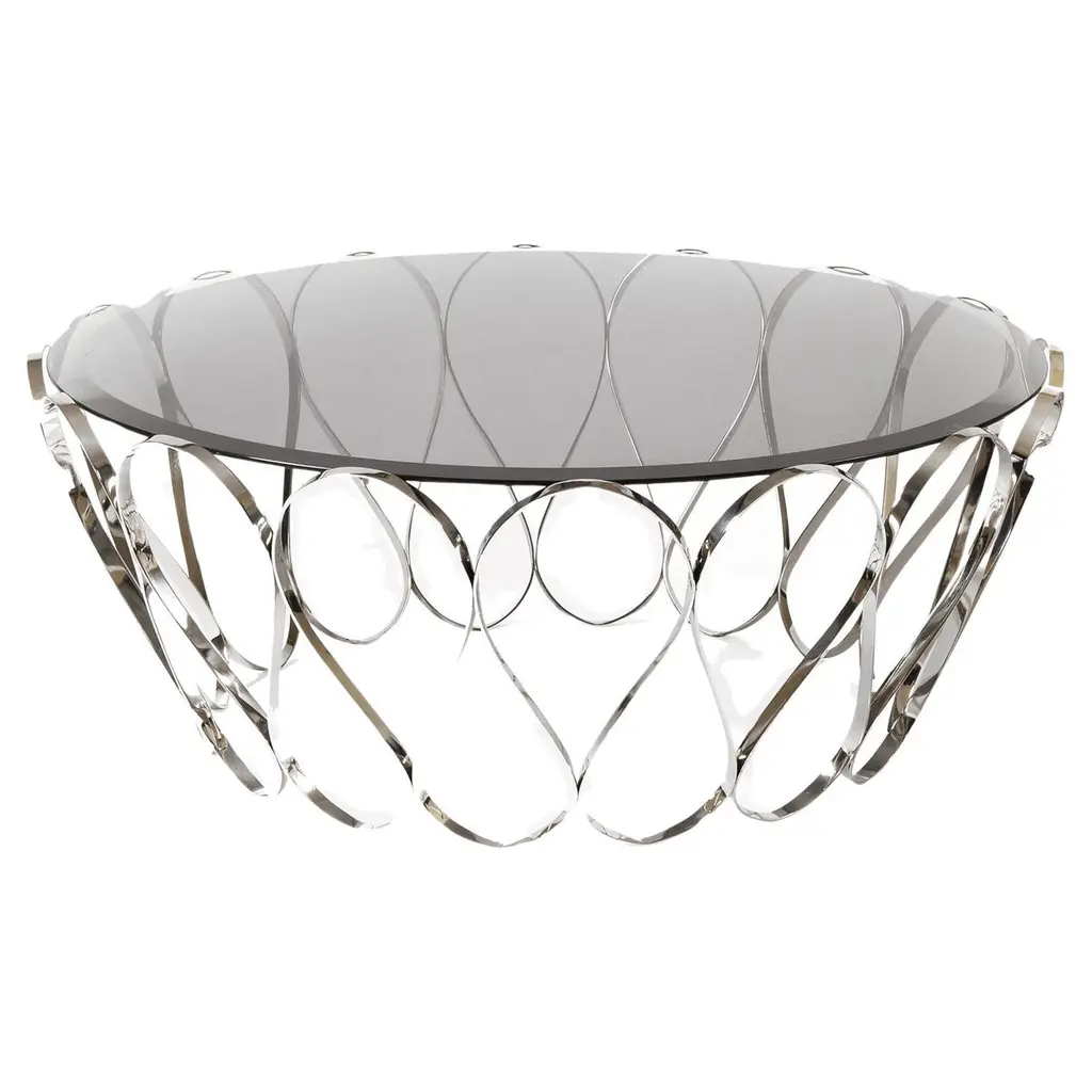 Dining Table Circular Mirror Steel Glass Crystal Collectible Design Handmade