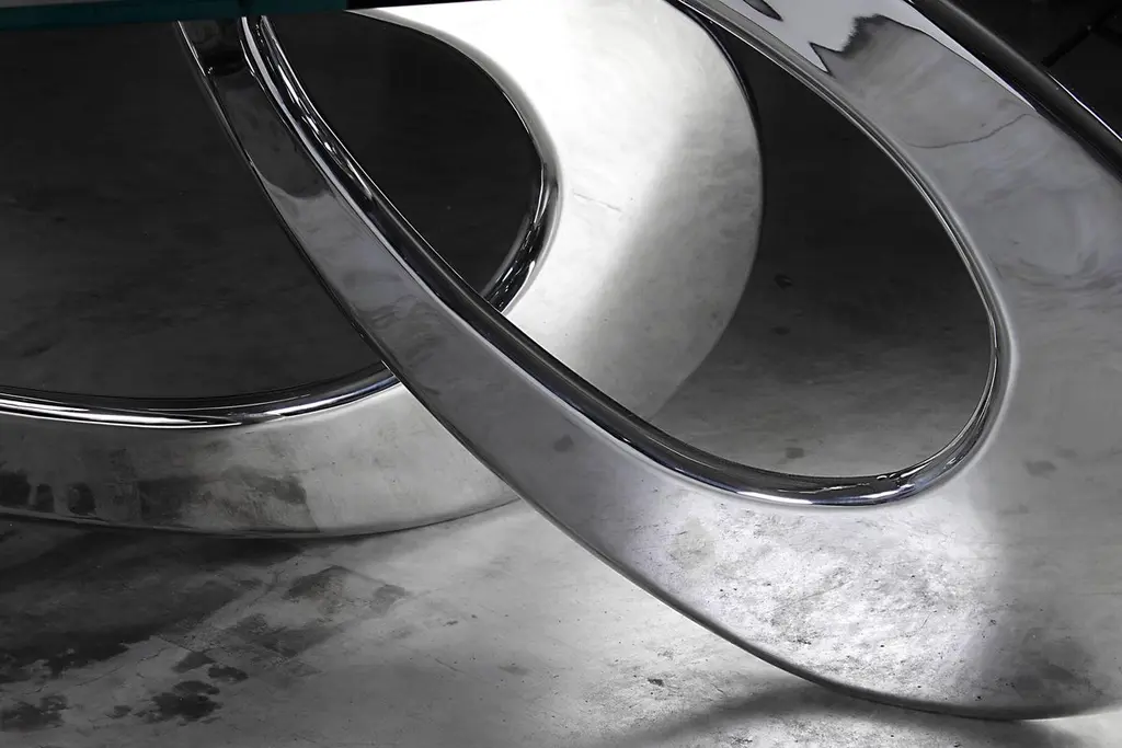 Dining Table Rings Sculpture Rectangular Glass Crystal Mirror Steel Collectible