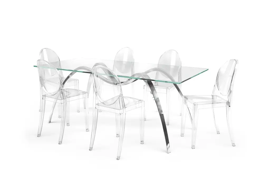 The 'Spider Classic Small' dining table is made of mirror polished stainless and tabletop in extra-clear crystal glass.Dining table dimension: L 190 x W 90 x H 75cm. Dimensions are customizable.Limited Edition of 15.Each table is hand signed and numbered by the artists (engraved), 100% handmade in Italy and comes with a “Certificate of Authenticity”.A little black spider is crawling slowly and tired on an endless road of dark wood.All of a sudden it holds motionless as if to rest; there is a cold and alien light shining on the little spider projecting its shadow, paradoxically gigantic and monstrous, on to the surface of the table. The fascinating projection of the spider’s shadow gave the inspiration for this table.We started off with a shadow, uncatchable and vanishing, in order to achieve the zoomorphic structure. The shadow, ever since slave to the body which it projects, becomes the unquestioned master and creator.The artworks by Barberini & Gunnell are regularly shown at international art fairs, such as PAD London, PAD Genève, PAD Monaco, Salon Art + Design New York, Art Miami.IMPORTANT INFORMATION REGARDING SHIPPING:Please contact us for an independent shipping quote as we provide high quality shipping at competitive prices due to our frequency of shipping, relations with international shipping companies and the possibility to organize directly from Italy.We take care of the entire customs procedure and paperwork. On request we organize a white glove delivery and installation of the artwork inside of the property of the client. All shipments are ALL-RISK insured.We carefully pack all artworks in strong wooden crates to ensure safe transport. This service is done directly in our atelier and is complimentary. All of our artworks travel with a shock watch system in order to monitorate rough handling by shippers and movers.