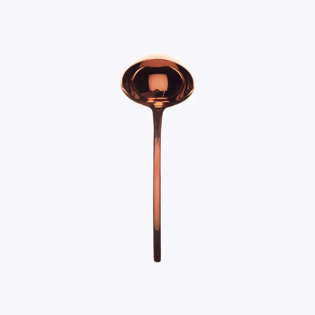 Due Serveware is made of the highest quality 18/10 steel, 4 mm thick, very durable, and incredibly ergonomic for dinner parties and everyday use. Enhance your dining experience with this beautiful Italian flatware! Dishwasher and food safe. Created in 1947, Mepra is a family-owned and operated company with a worldwide presence in flatware, cookware, and stainless-steel products. Today, Mepra flatware and kitchenware appear on the tables of the most prestigious hotels, award-winning restaurants, and artisanal-centered homes. Bring the magic of three generations worth of Italian traditions, designs, and lifestyles into your kitchen and dining room today. Stainless Steel plating features a special vintage process that gives it a rustic, warm, and elegant appearance while still being durable and inoxidizable coating. Winners of the 2020 Good Design Award, the Bronzo, Oro Nero, Oro, and Ice Oro Collections are perfect for the most refined and stylish homes with their pure lines and harmoniously light forms. Champagne Ice, Ice Bronze, Ice, and Ice Oro Nero are coated with a PVD Titanium Coating that is tested and guaranteed for more than 3000 washes in a commercial dishwasher. The special Titanium Plating was originally developed by NASA, resulting in a durable and inoxidizable coating like non-other. 7 Piece Full Serving Set includes (1) Serving Fork, (1) Serving Spoon, (1) Salad Serving Fork, (1) Salad Serving Spoon, (1) Soup Ladle, (1) Gravy Ladle, and (1) Cake Server