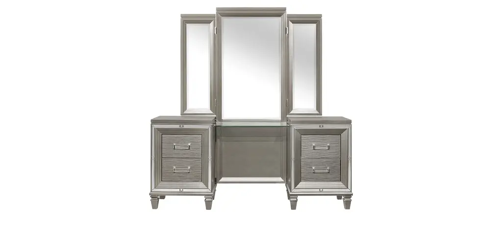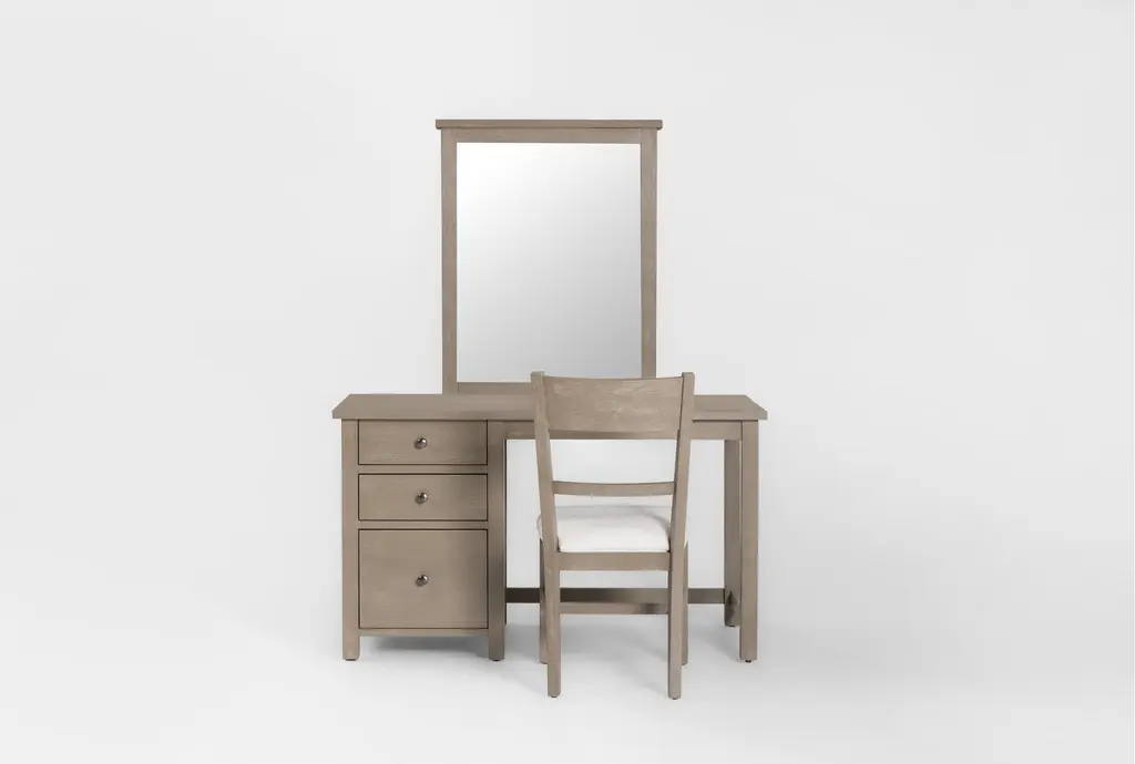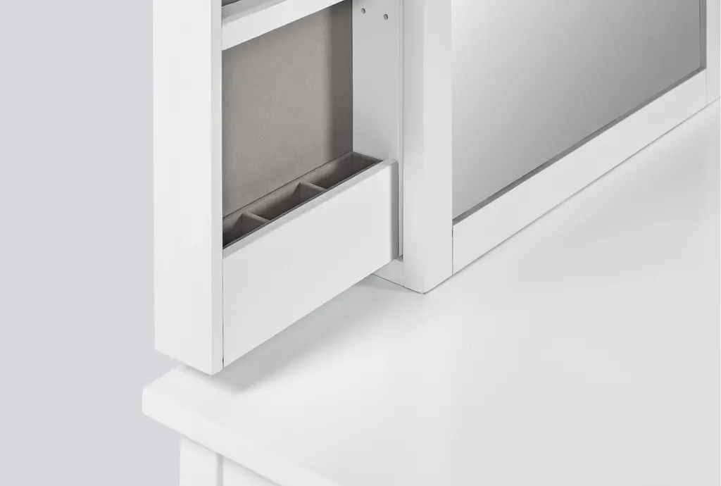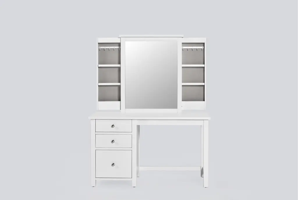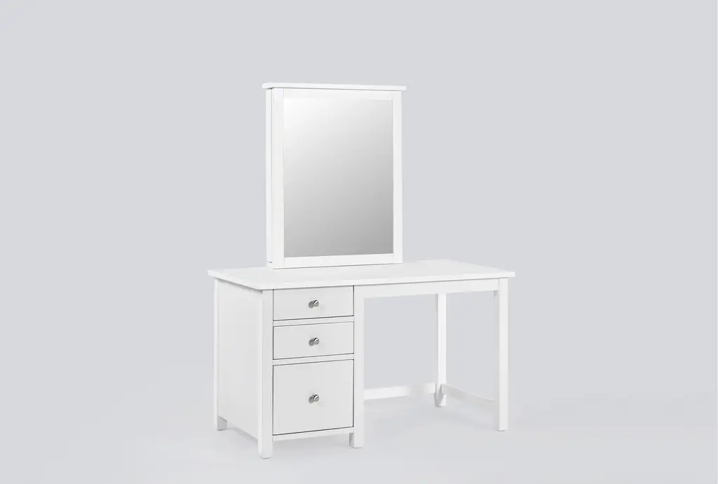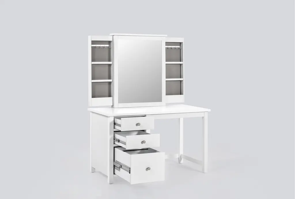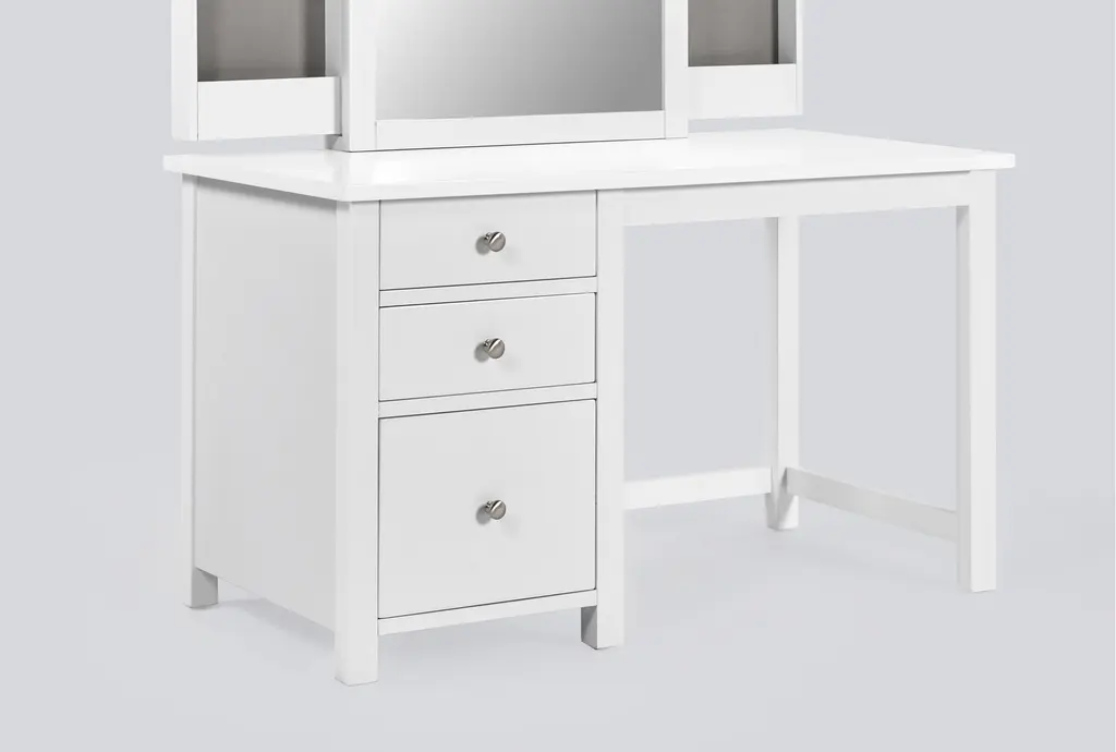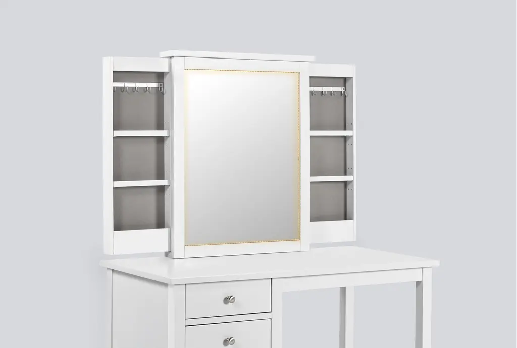 Felipe White Vanity Kids Desk And Mirror With Hidden Side Storage & Led Lights
