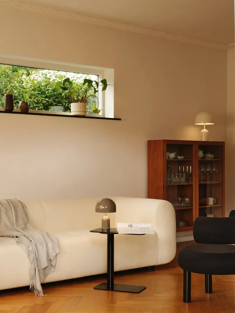 The Flash Rectangle side table features a modern rectangular design with an all-black finish and mirrored glass top. It can cantilever over the arm of a low sofa, creating the illusion of space while reflecting light. Fully contract compliant.