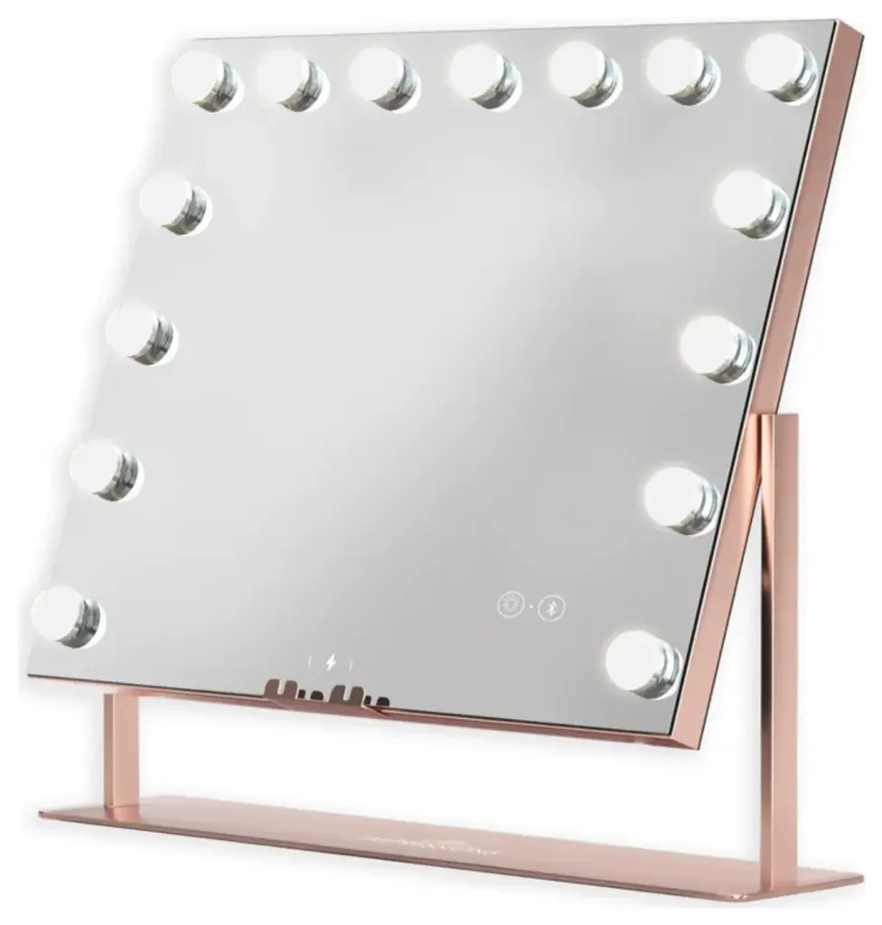 Impressions Vanity presents Gilded Tri Tone 15 LED Lights Makeup Mirror with speakers. Experience the transformative power of precision and glamour as you revel in the crystal clear reflection that this cosmetic offers. Its elegant gilded design not only adds a touch of sophistication to your vanity but also emanates a luxurious vibe that elevates your entire beauty space. It''s time to illuminate your face flawlessly with the three adjustable color modes cool, natural, and warm. The lighting variation provides the perfect ambiance for any occasion. The smart powering up for your smartphone ensures that you can stay connected while perfecting your look. Unwind with your favorite tunes as you get ready with this makeup mirror with lights. Connect your device to the built in speakers that add a musical dimension to your beauty ritual. Navigate effortlessly through the features with the soft touch sensor button control. This make up vanity mirror with lights offers a seamless and intuitive experience to control while getting ready. Immerse yourself in a world of beauty with a light up mirror for makeup that goes beyond reflection. This lighted mirror is a statement piece that enhances your routine, leaving you feeling confident and ready to conquer the day. Discover the ultimate blend of functionality and elegance with our make up mirror with lighting. Elevate your daily beauty routine with our LED mirror for makeup, it''s an essential companion for every makeup enthusiast.Features:TRI TONE LIGHTING: Our premium makeup vanity mirror for desk designed with 15 brightness adjustable LED bulbs, that produce three glamorous color tone and help you to achieve the perfect makeup lighting ambiance at homeSMART POWER UP: Keep your phone connected to the built in cable free power dock of our make up vanity desk mirror as you prepare, ensuring your phone is always within reach, even during those hurried makeup momentsMUSIC SPEAKERS: Enhance your makeup experience by connecting your device with the attached speaker of this vanity table mirror. Stream your favorite tunes or podcasts and turn your daily makeup session more enjoyableELEGANT DESIGN: This meticulously crafted lighted makeup mirror for desk achieves a glamour and luxury touch with its gilded frame and adjustable tabletop stand and express a prestigious vibe in your vanity space