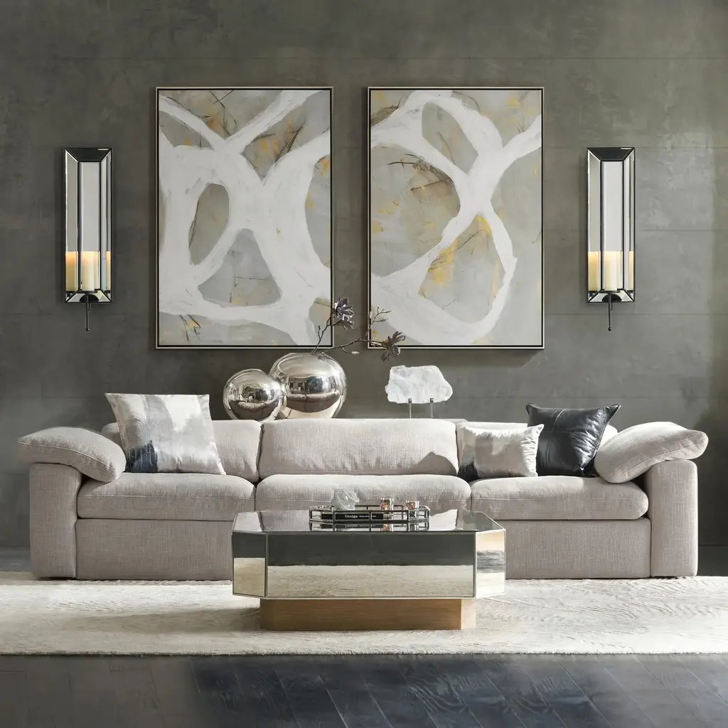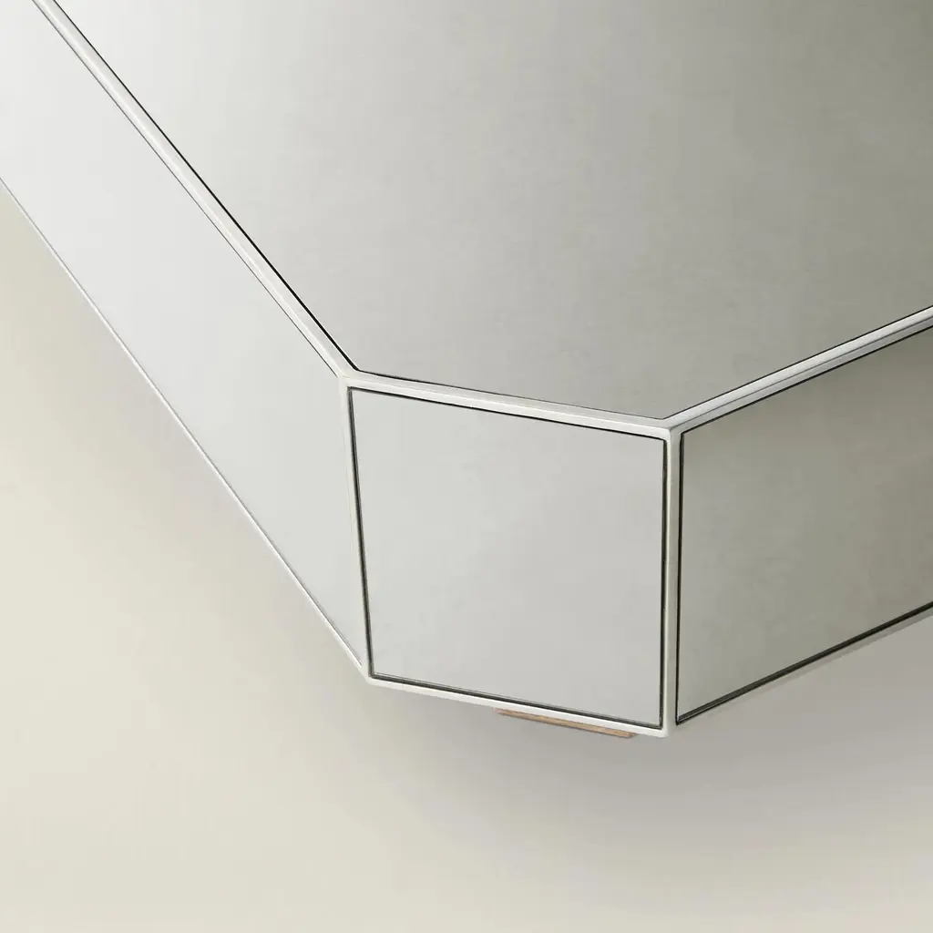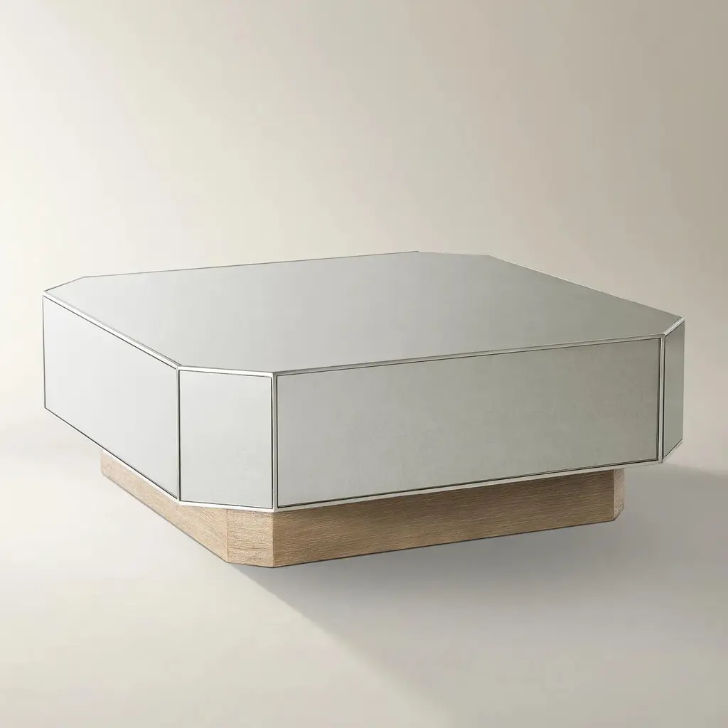 The Glimmer Coffee Table is a luminous centerpiece for any living space. Featuring a silver mirror top and a warm oak veneer base, it creates a dazzling interplay of light and reflection. Sophisticated yet functional, this table transforms your room with its refined charm. ZG Exclusive