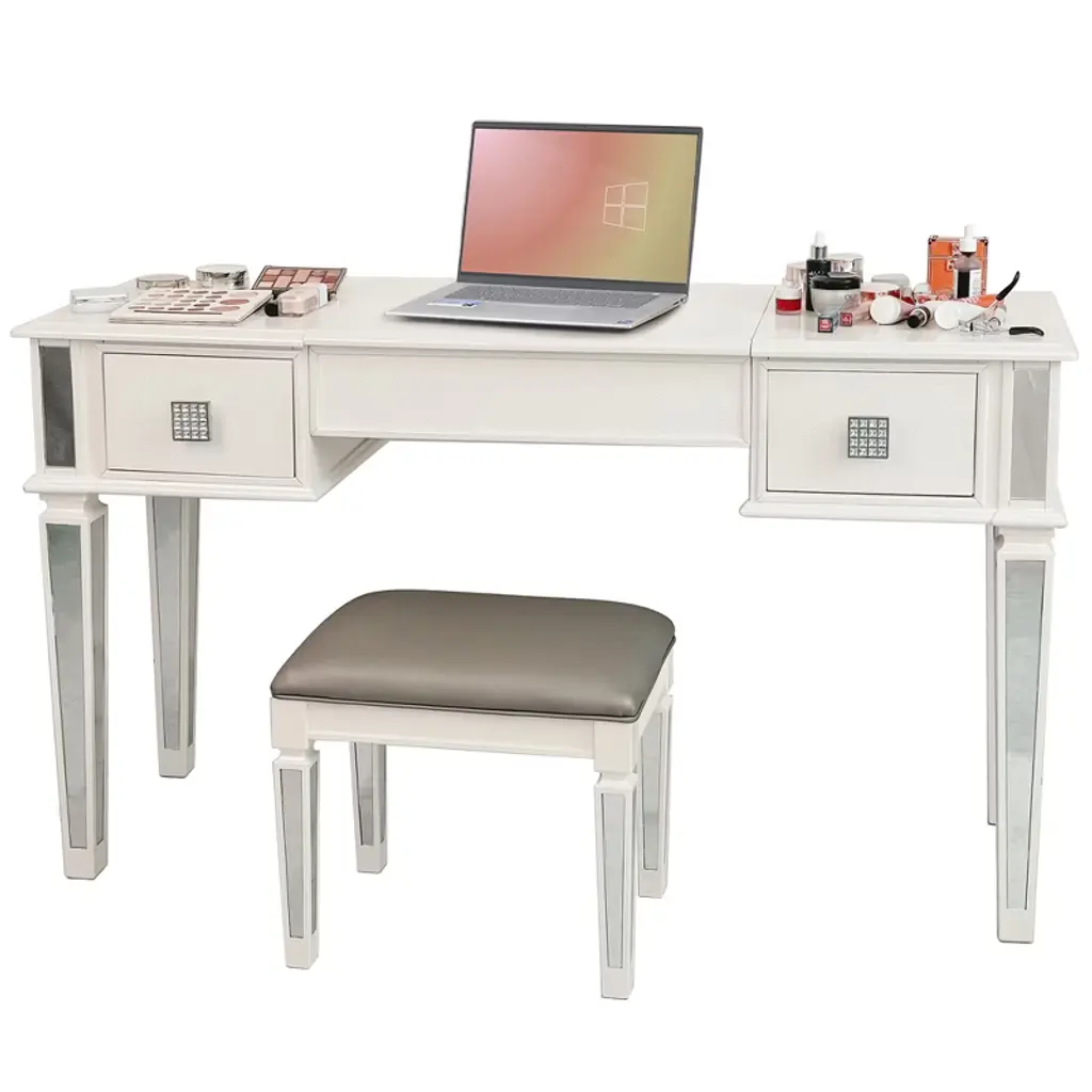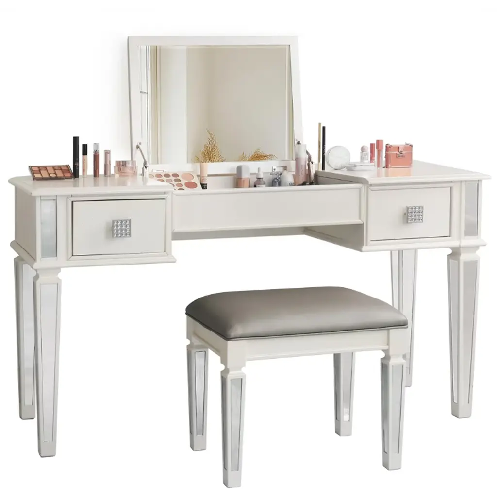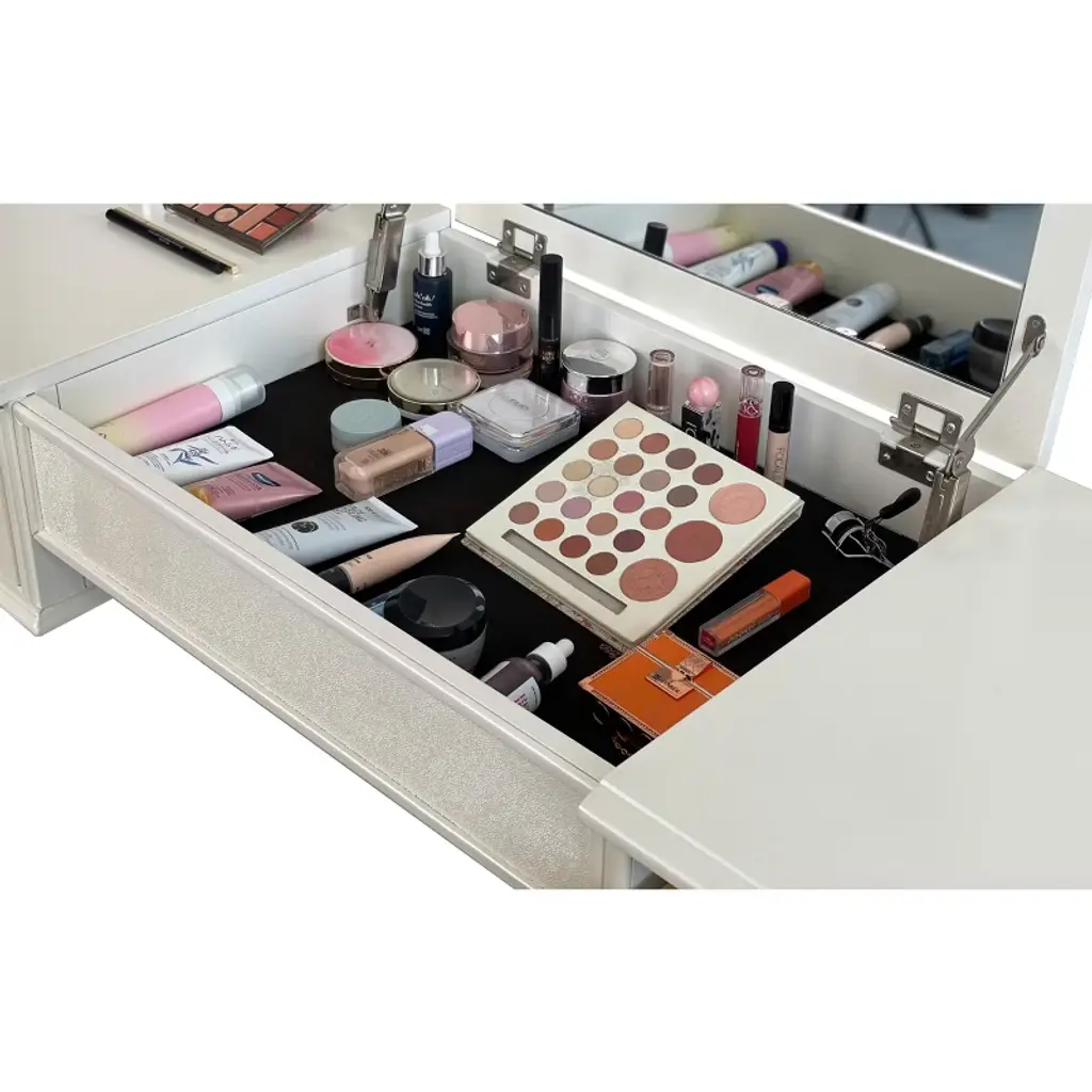 Gulches Mirrored Vanity Desk Set - Drawers, Mirror & Stool, Flip Up Dressing Table, Women/girl Bedroom Furniture Combo