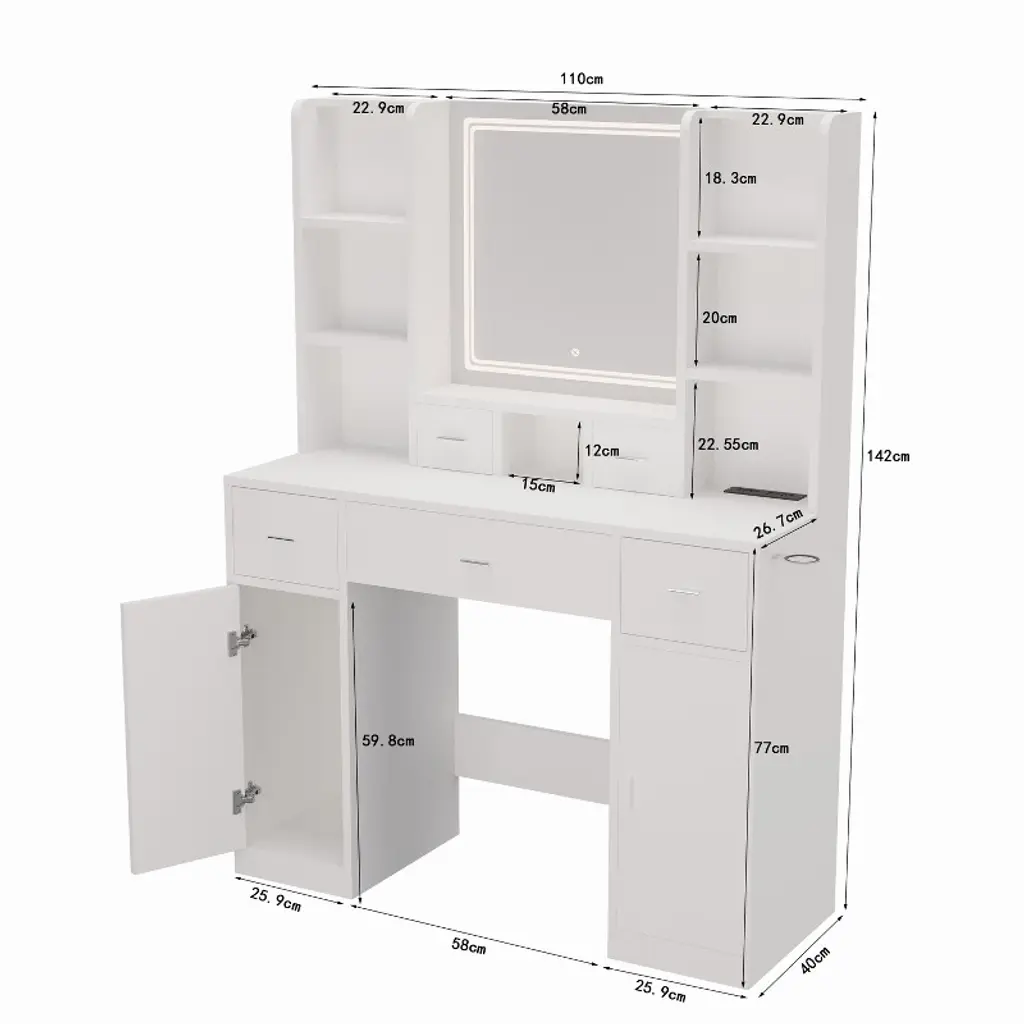Gulches Vanity With Led Mirror And Hair Dryer Rack, And The Vanity In The Bedroom And Dressing Room Is Equipped With Dressing Pad,white