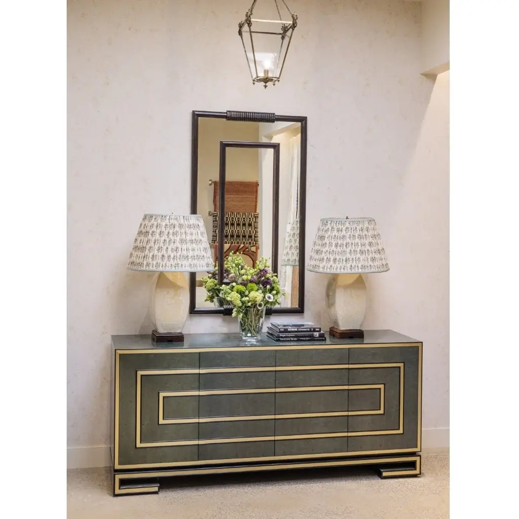 Stunning with delicate acrylic spheres framing the border in a pleasing circular pattern, this mirror is breathtakingly original. Glimmers of brass within the spheres catch the light and add an air of elegance and beauty. Hang in a foyer or bathroom for an unexpected style.