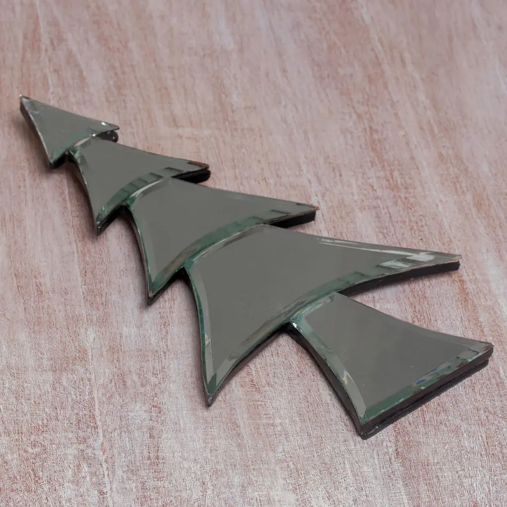 This wonderfully festive mirror comes from Javanese artisan Sapto Daryono. The lovely tabletop mirror is crafted by hand from albesia wood and glass into a tree reminiscent of those typically seen at Christmas. This is a brilliant accent for the holiday season when displayed on a table or shelf.