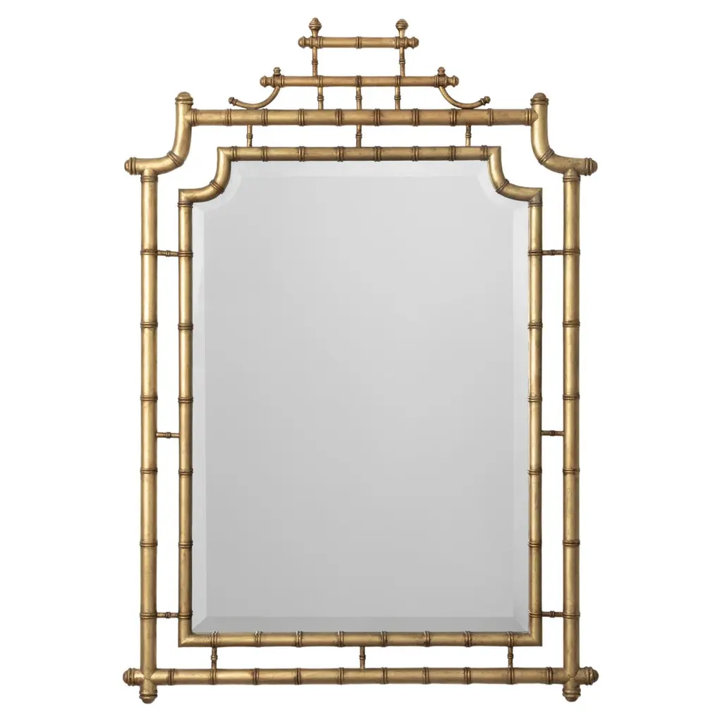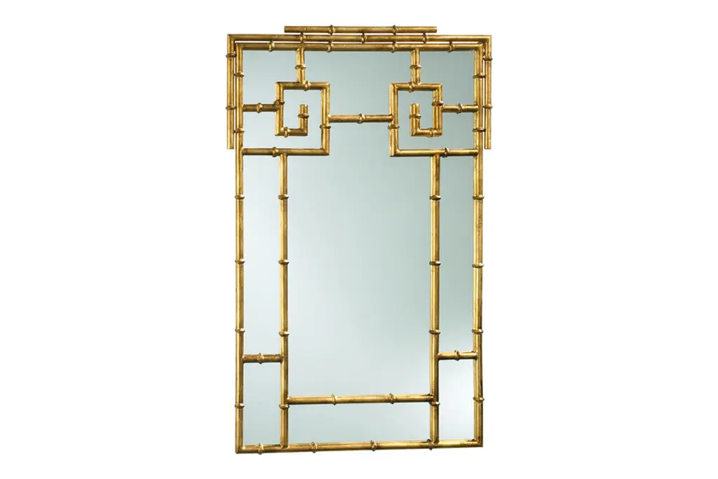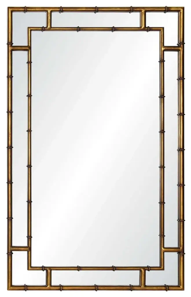 The Iron Bamboo mirror is both graceful and grand with gold finished bamboo forming the frame for this pleasing mirror. Place it over a mantle, entryway table, or dresser! This mirror adds a look of class and sophistication. Let this mirror open your space and reflect the beauty of your room. Available in three sizes.