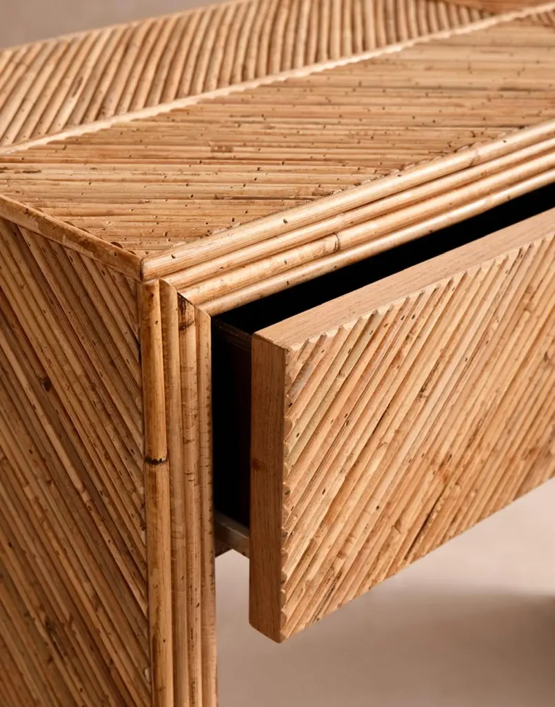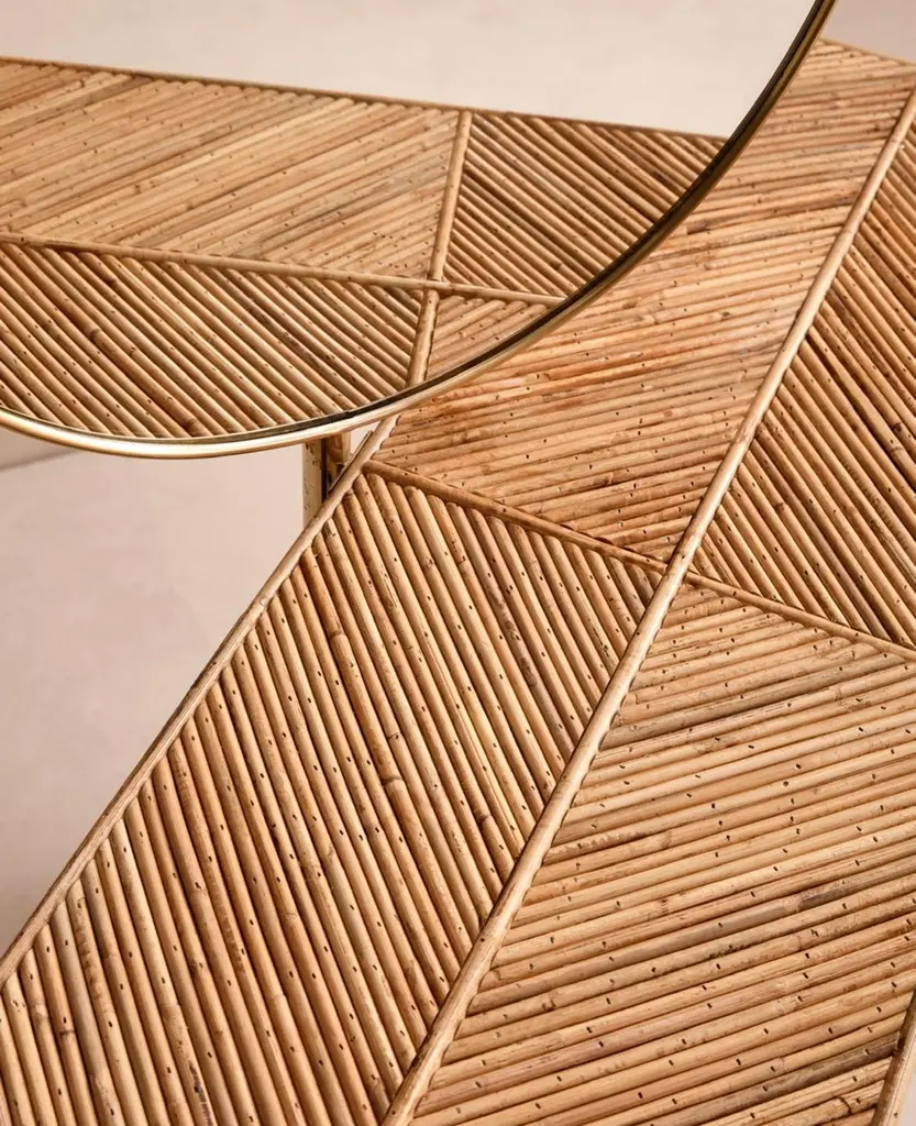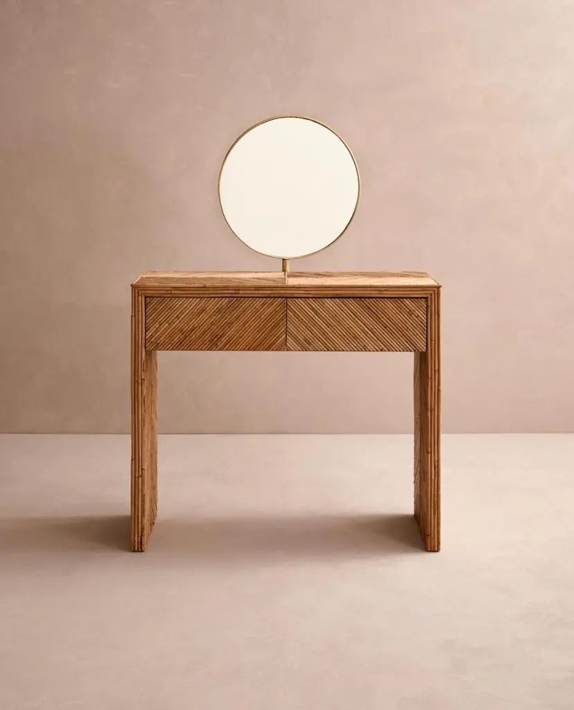 Chic bamboo vanity crafted in Italy. Quality seen in the photos. The mirror is brass. There is a drawer in the front. Perfect entry table or room/bathroom vanity. In the manner of Gabriella Crespi.Same era as: Charlotte Perriand, Jean Prouve, Pierre Pauline, Serge Mouille, Jacques Adnet, Jean Royere, Roger Tallon, Michel Buffet, Pierre Guariche, Le Corbusier, Gio Ponti, Franco Albini, Carlo Mollino, Guglielmo Ulrich, Jo Colombo, Ettore Sottsass, Marco Zanuso, Osvaldo Borsani, Ico Parisi, Charles and Ray Eames, George Nelson, Eero Saarinen, Florence Knoll, Isamu Noguchi, Harry Bertoia, Paul Mccobb, Edward Wormley, Vladimir Kagan, Milo Baughman