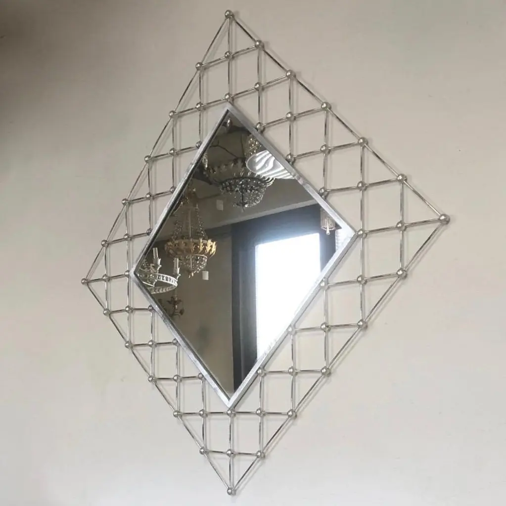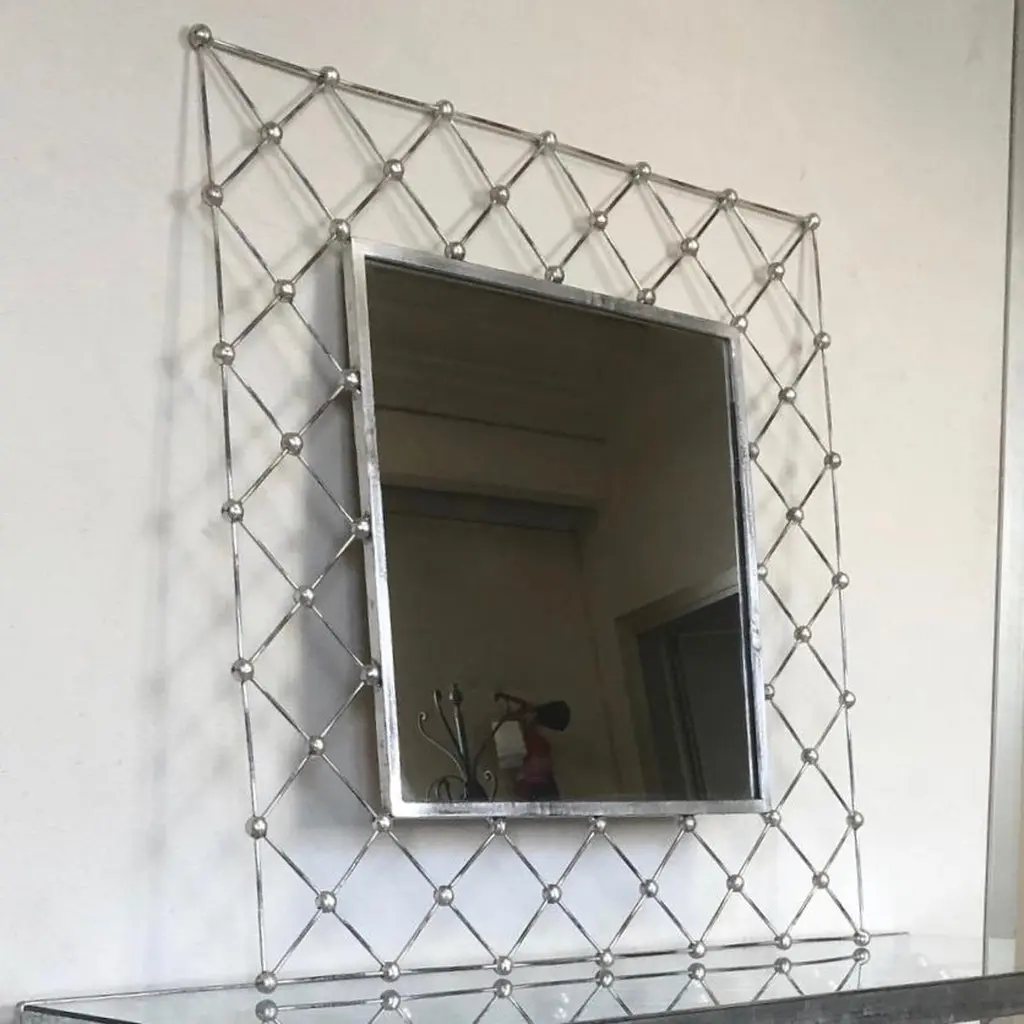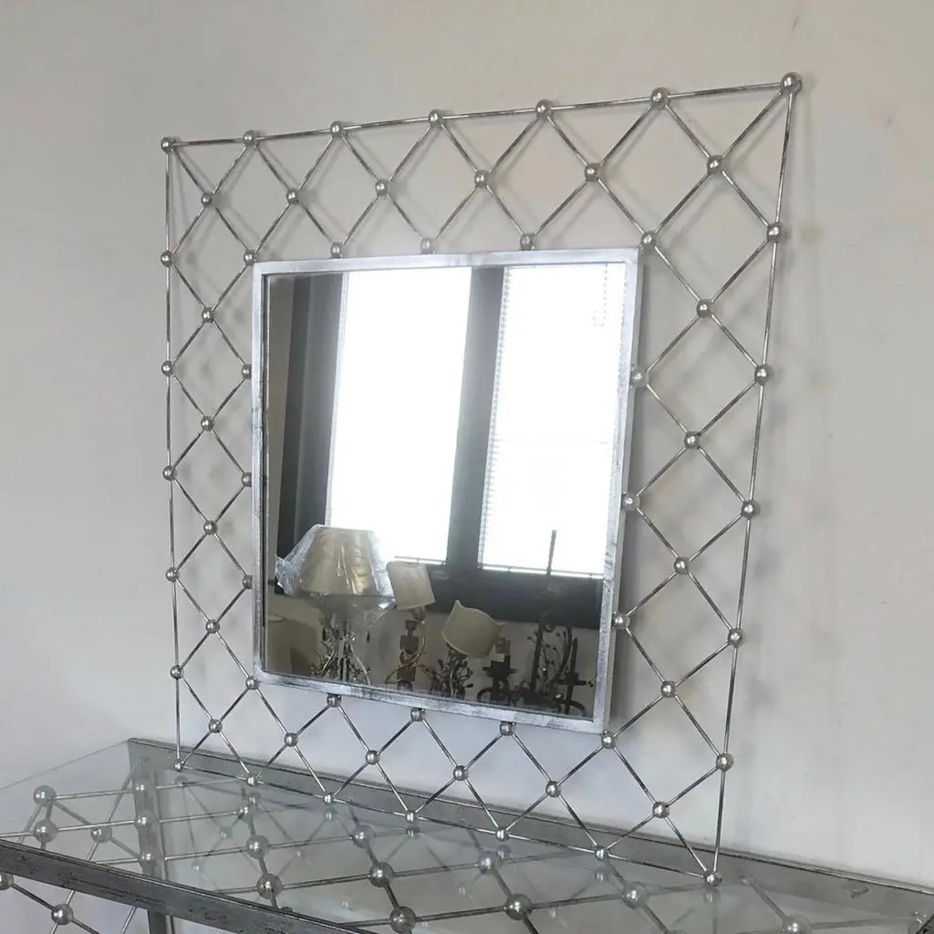 Italian Modern Industrial Home Interior Design Criss Cross Fretwork Iron Mirror