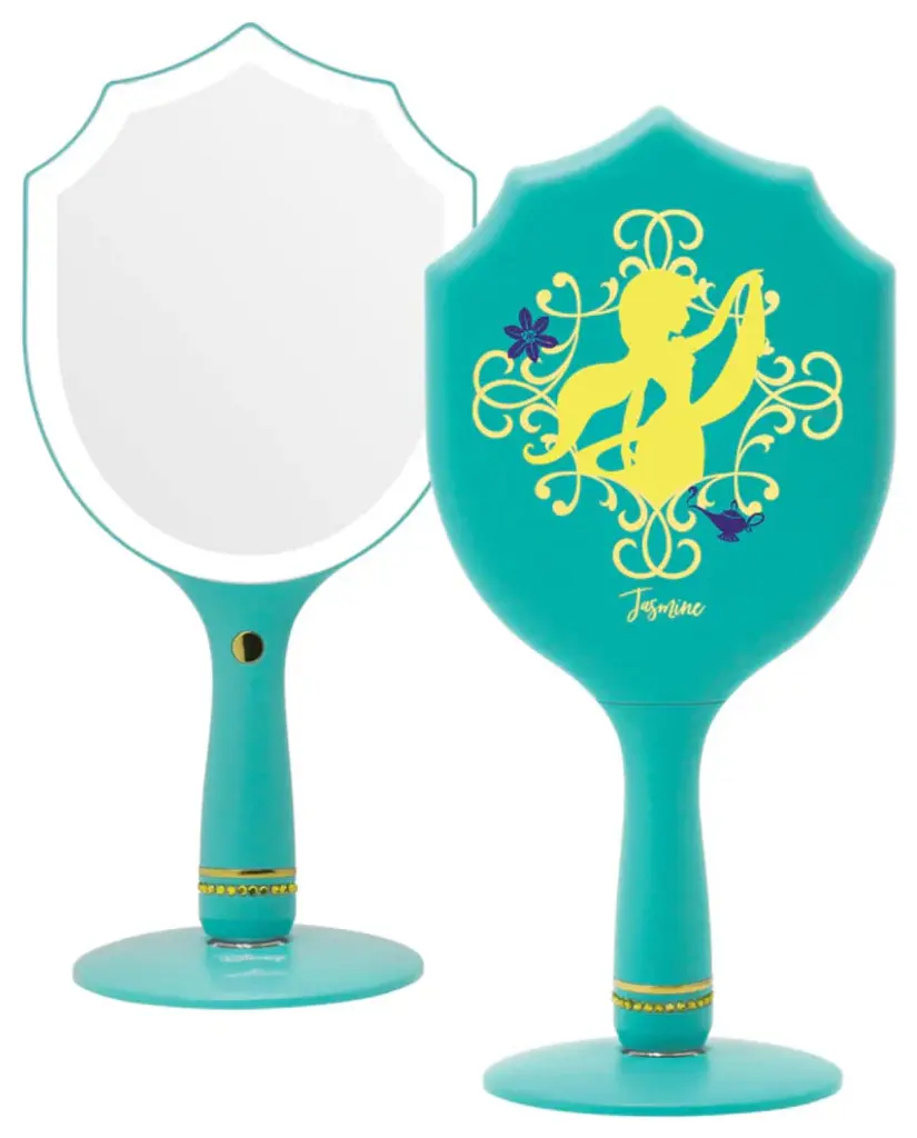 Impressions Vanity This magic mirror is inspired by your favorite Disney Princess, outlined by a bright LED light strip, and powers on with just the click of a shimmering button. Simply press the button to turn on the mirror and press and hold down to adjust the brightness. Includes a magnetic ball standing base to dock the mirror for hands free use. Rechargeable for cordless use. Easy recharging by simply plugging in the provided USB charger to the mirror. Fit for a princessFeatures:ENCHANTED HANDHELD MIRROR: Inspired by our favorite Disney Princess, this magic mirror has a handle for comfortable holding. A Jasmine LED hand mirror will be a charming piece in your vanity!LIGHTED MIRROR: This makeup mirror is outlined by a bright LED light strip with three light color temperatures to choose from: cool white to natural or warm light tones. Press and hold the button to adjust the brightness.ADJUSTABLE STANDING BASE: Includes an adjustable magnetic ball standing base to dock the mirror for hands free use and can tilt for the perfect angle. The compact and slim design makes this mirror travel friendly and ideal for storing in your luggage.RECHARGEABLE: Rechargeable for cordless use. Easy recharging by simply plugging in the provided USB charger to the mirror.