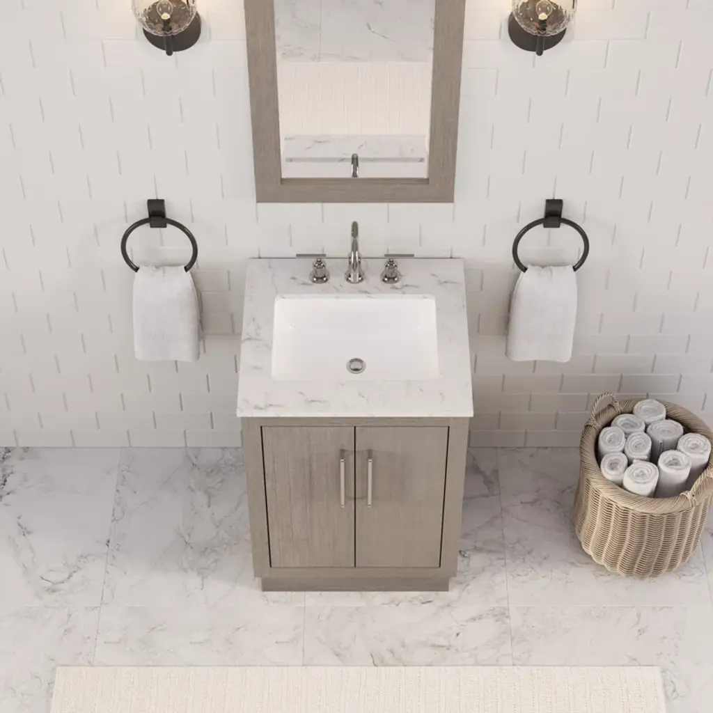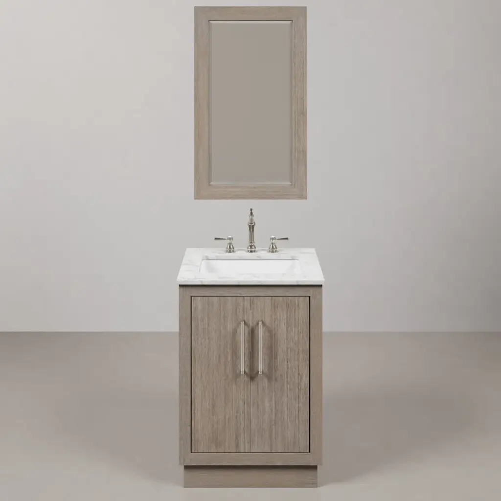 Kamila 24" Carrara White Marble Countertop Bath Vanity In Gray Oak With Faucet And Mirror