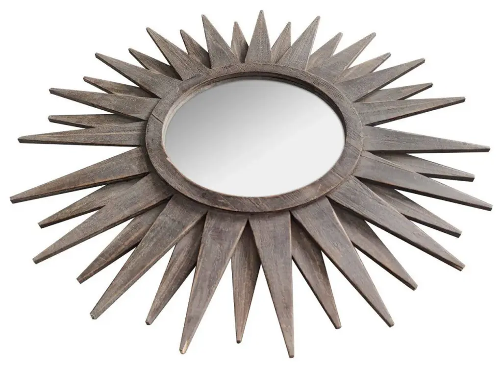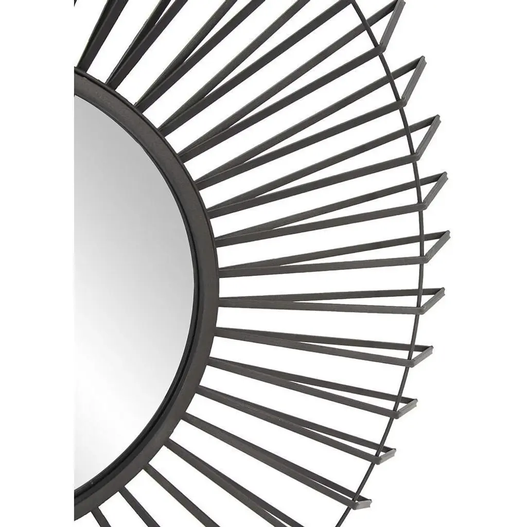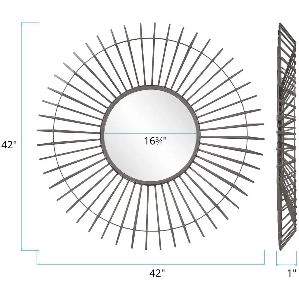 Our Kenton Mirror features intricate detailing of radiating bars fashioned from iron into a round, sunburst frame. The graphite finish blends to create this unique, industrial look. This collection is so versatile that many of our accent tables and decorative accessories can easily be paired up to make a statement. Keyhole slots are manufactured into the back of the mirror so the piece is ready to hang right out of the box.