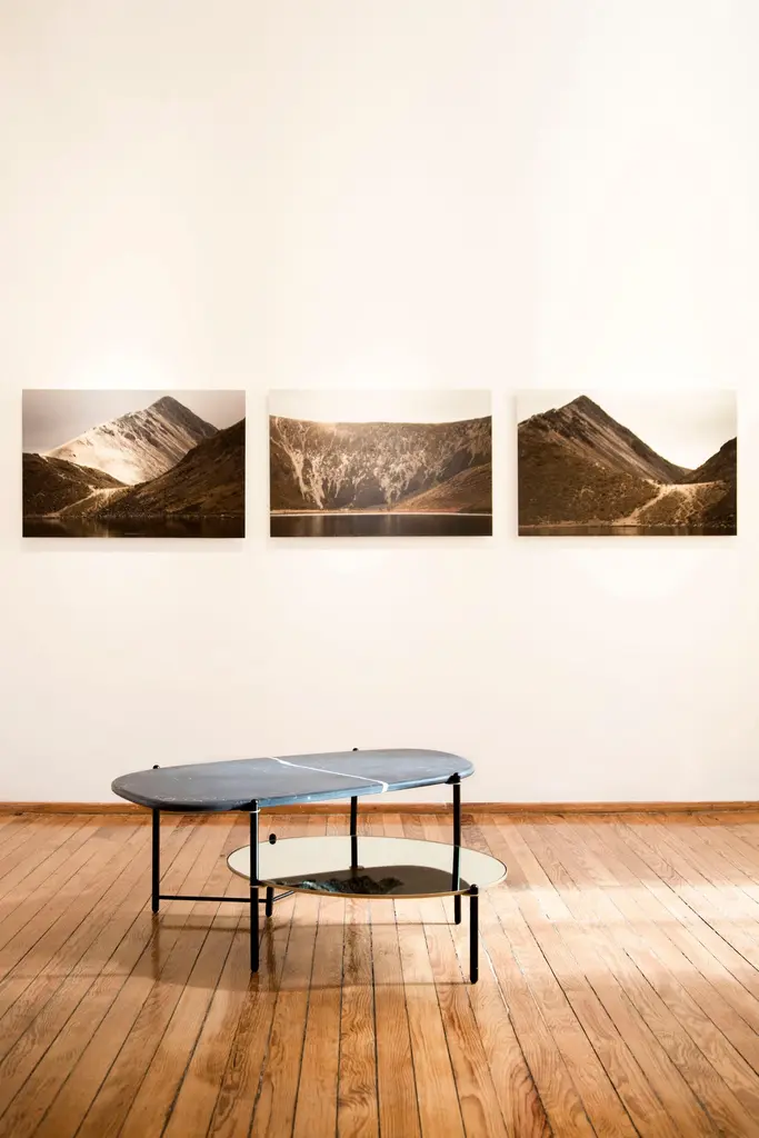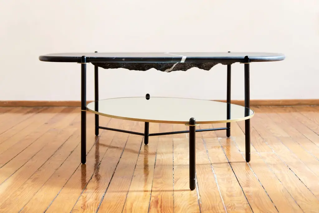 One can discover the hand carved mountain underneath by peeking in the lower mirror top. The tabletop is made of a carved block of Monterrey marble or Huichapan marble according to the material availability. The metal structure is powder coated in matte black and the metal details are powder coated in chameleon color. The second lower tabletop is a mirror. It comes in two different sizes, small or large.This coffee table is a contemporary Mexican piece and is produced in Mexico by craftsmen. It's a collectable and sculptural coffee table. This table comes in two sizes. The small one is 80x68.5x40cm; the big one is: 120x100x46cm.We are Comité de Proyectos, an interior and furniture design studio from Mexico City. We produce contemporary Mexican pieces with local craftsmanship, each one of them is monitored in detail from someone of our design team to ensure the highest quality. We love what we do, you'll love it too.We are a small studio from Mexico City, we do not have stock, all our products are handmade, therefore there are no returns or exchanges.