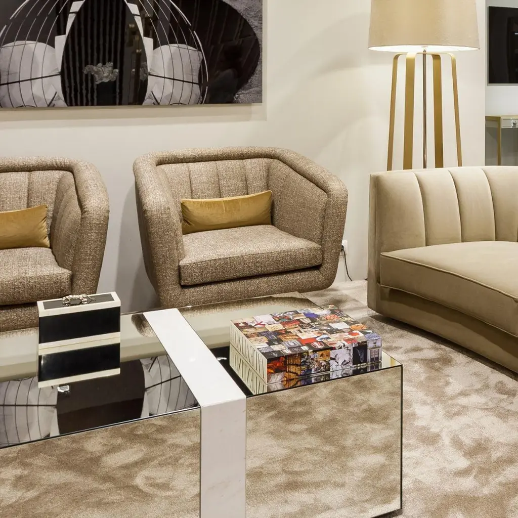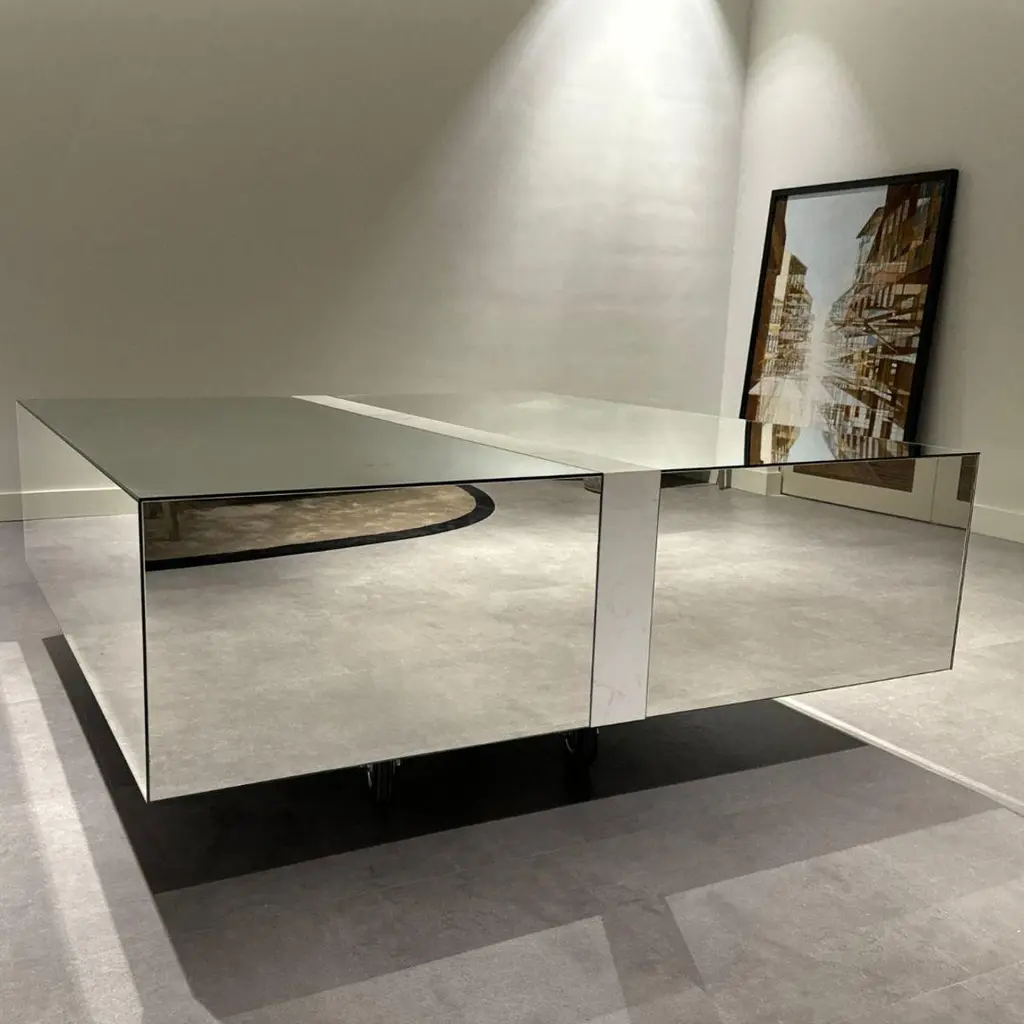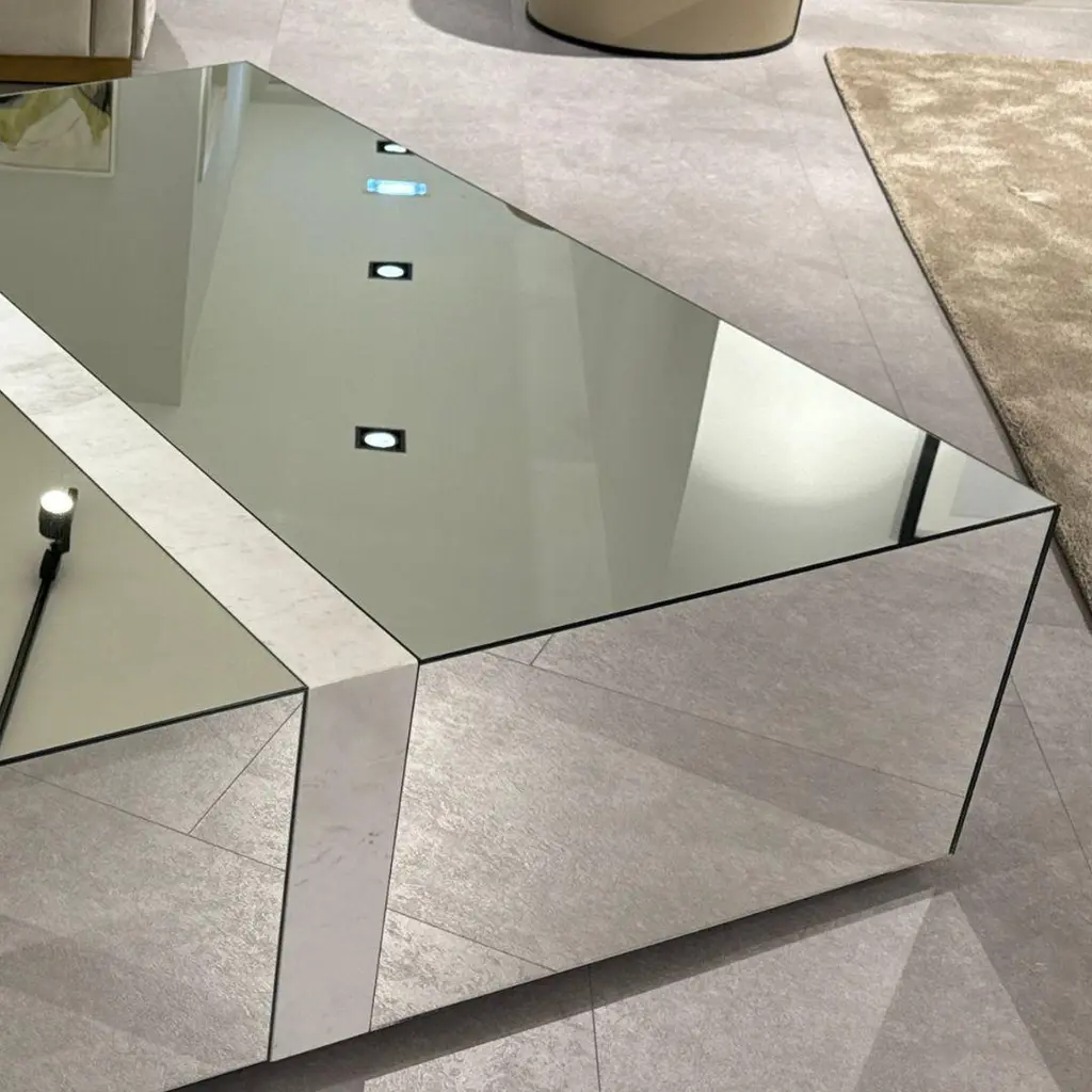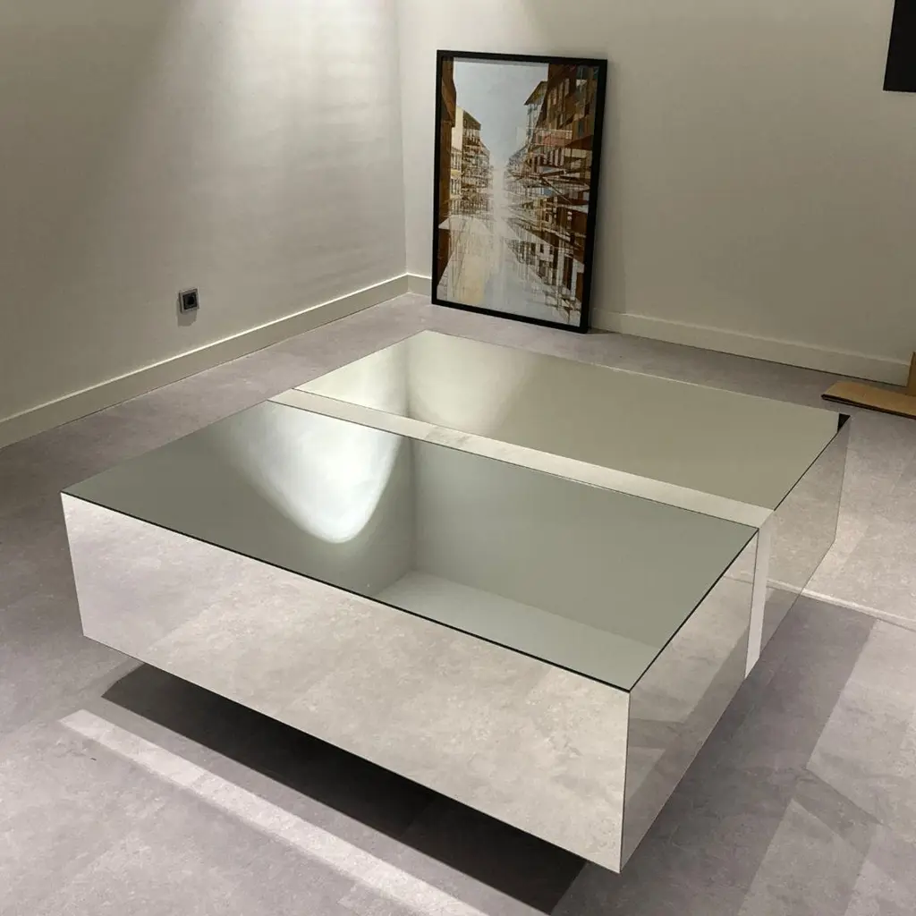 LEGADO coffee table: STOCK UNIT - Available for immediate deliveryLEGADO is a coffee table made of mirrored glass that combines with the natural stone detail. Perfect for luxury decor. Available in natural mirror and Olympic White marble border.