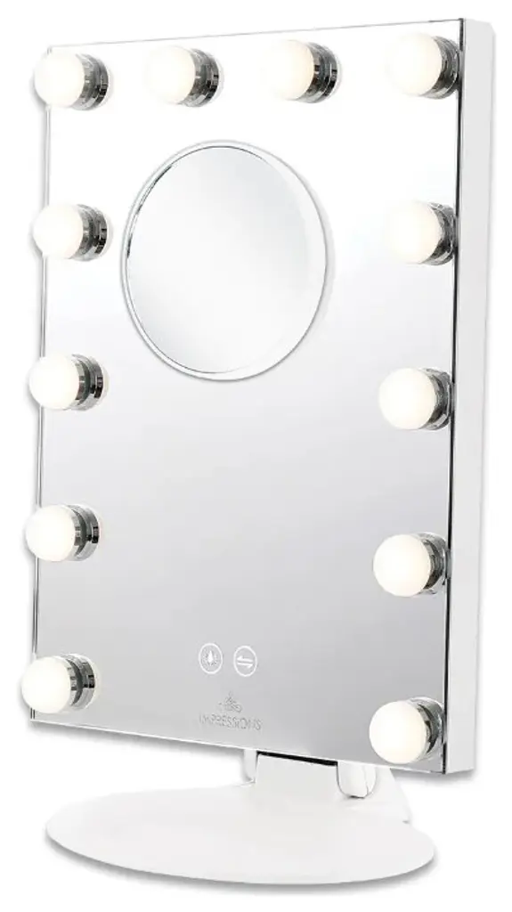 Impressions Vanity Glam wherever you go with the lumière touch Pad mini lighted makeup mirror. A travel friendly design with premium and stylish faux crocodile leather. The Lighted vanity mirror has detachable and foldable converting it into a mirror stand. Makeup mirror Equipped with an elegant and sturdy aluminum frame with a beautiful and durable anodized finish. This mirror is available with an LED strip light or 6 ultra bright Hollywood style bulbs with adjustable brightness. Now you can take the Hollywood glamour with you on the go.Features:PORTABLE DESIGN: This light up mirror for makeup has a detachable and foldable faux crocodile leather cover, which converts into a mirror stand. This personal mirror will surely ease the mess on your travel vanitiesLIGHTED VANITY MIRROR: This vanity mirror for the table help you see every detail of your makeup application and other facial touch ups. Easily put on your makeup and groom your eyebrows with this lighted makeup mirrorCOMFORTABLE DESIGN: This desk mirror with lights will be your next favorite travel mirror, as it has the perfect size of Width of 11.81 inches, Depth of 1 inch, and height of 16.14 inchesDURABLE MATERIALS: This smart mirror has an aluminum frame with a durable anodized finish and faux crocodile leather cover. So no worries, this LED mirror for makeup can withstand your tough journey and regular use