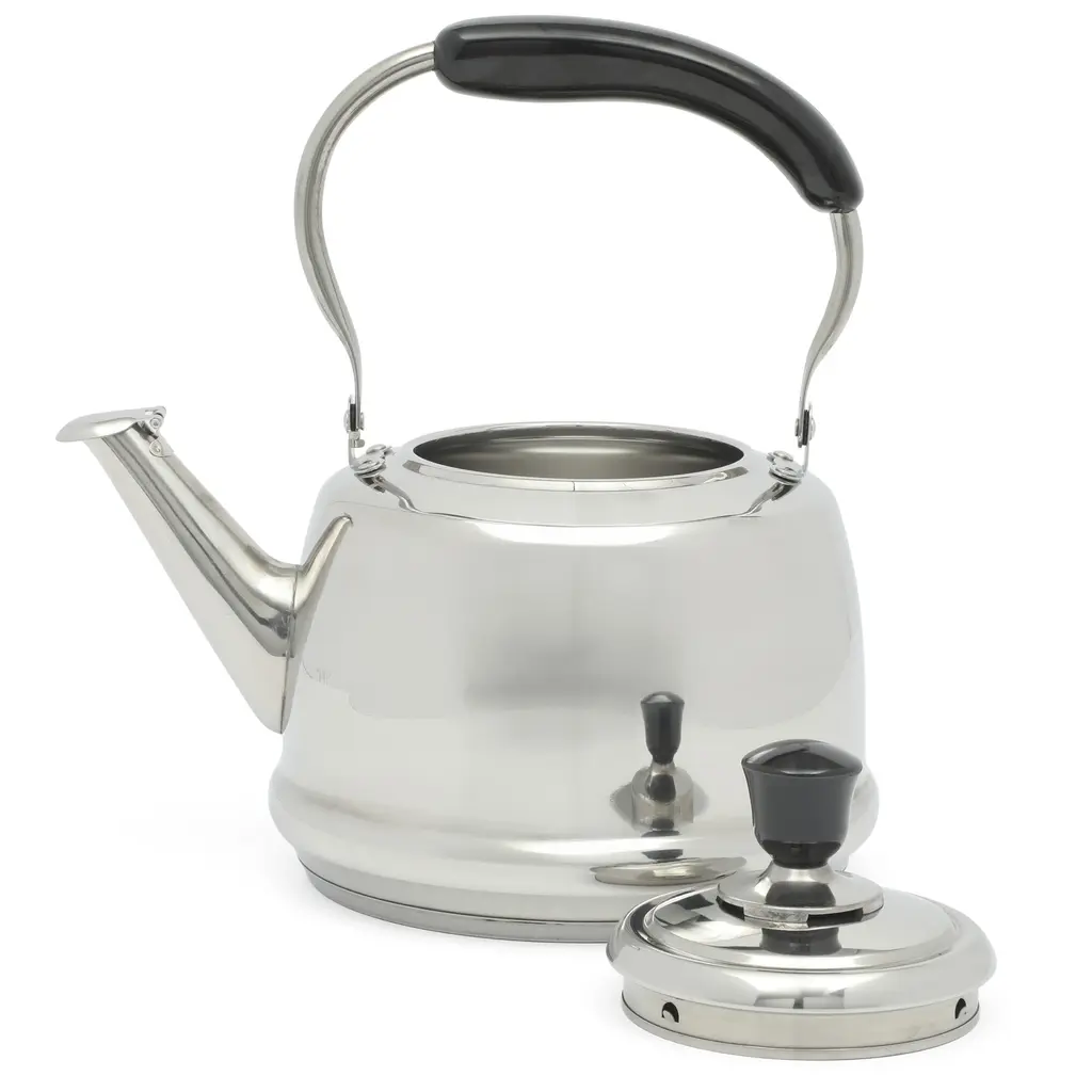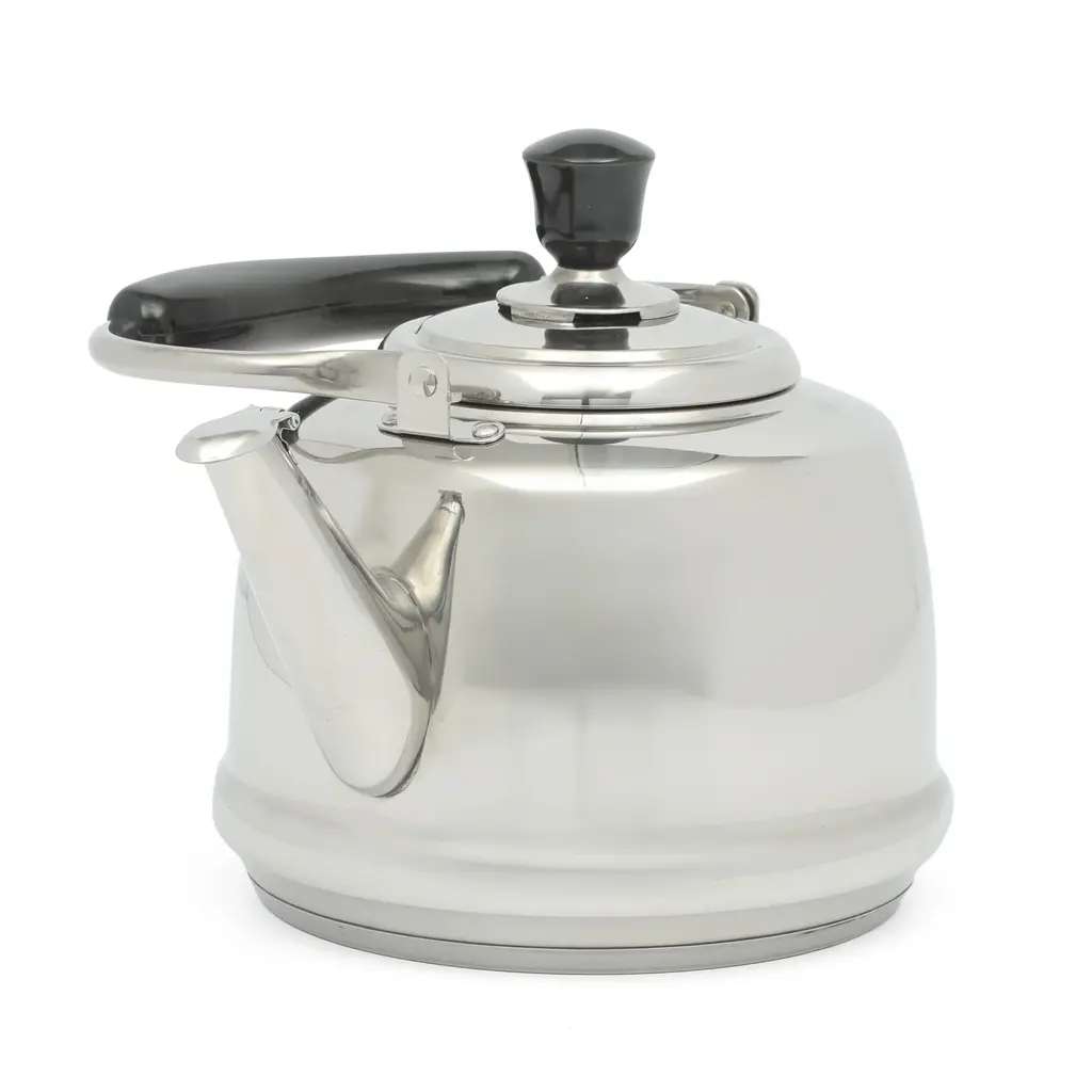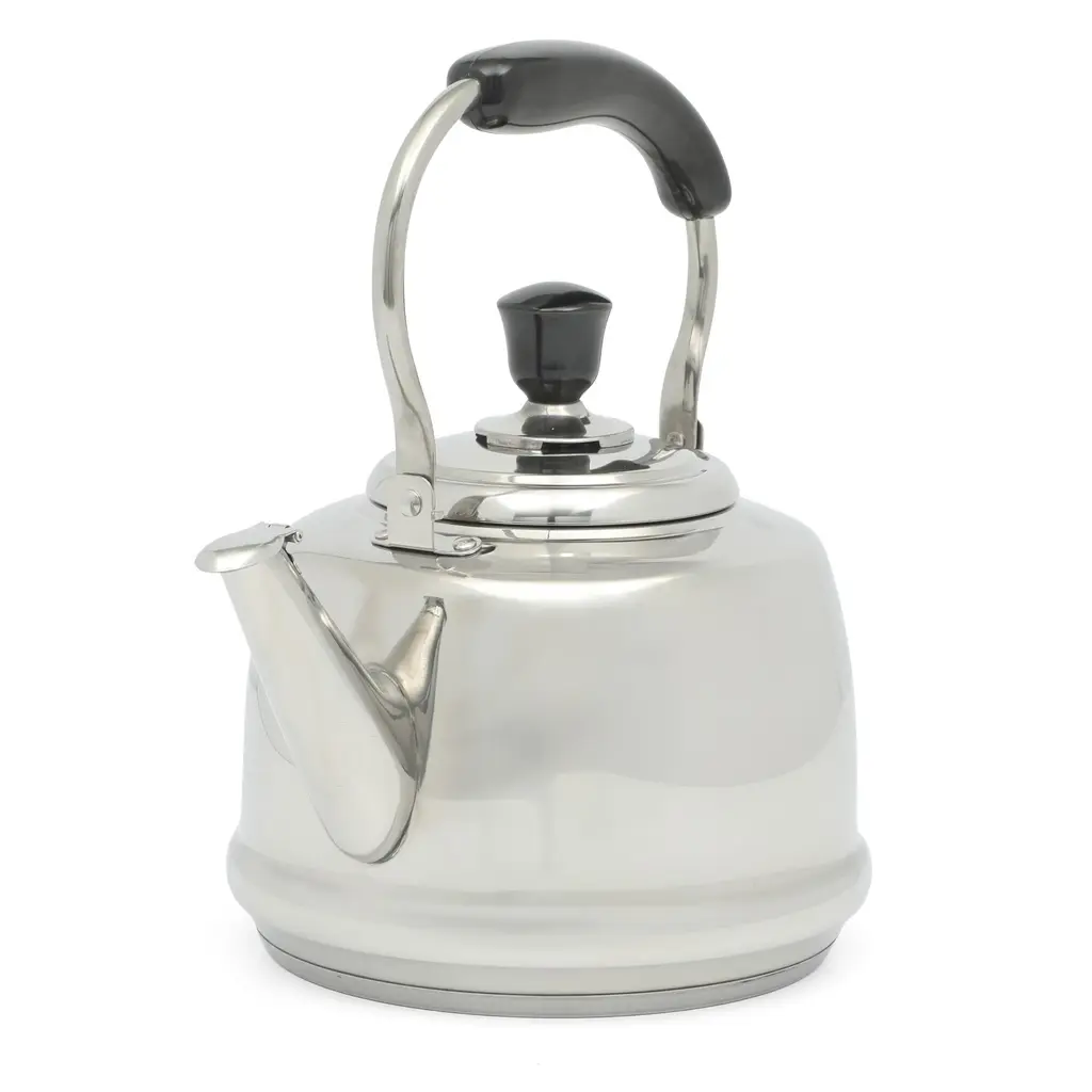 Scones and crumpets aside, teatime is not complete without a beautiful table setting and, of course, hot tea. Boil water and serve tea in the Kingstree 1.9-quart Stainless Steel Teakettle from Martha Stewart. Perfect for preparing and pouring hot water, it features a vintage-inspired shape that complements any theme of tea service—whether casual, traditional, or a bit more formal. From breakfast to noon, midday breaks to supper, this teakettle keeps hot water ready, not just for tea but also for drip coffee, soups, stocks, and more. Safe for use on all cooktops, this piece easily earns a spot on any home chef's list of kitchen favorites for both its style and performance. Hand wash only.Embrace thoughtfully designed home essentials from America’s most trusted lifestyle expert, Martha Stewart. Step into her exquisite and iconic world, filled with a curation of high-quality products for prepping, cooking, baking, serving, and enjoying. All crafted to elevate everyday homemaking and seasonal entertaining, these kitchen and tabletop pieces blend style and performance, inspiring avid hosts and home cooks to set stylish tables, serve up delicious meals, and create spectacular memories.* A BOX INCLUDES: One 1.9-quart stainless steel whistling teakettle A TEATIME CLASSIC: Perfect for preparing hot water for coffee breaks or tea service, this teakettle takes a vintage-inspired shape that seamlessly transitions from the stovetop to the table. The whistling spout signals that the water has reached boiling point and cues the host to start serving and entertaining.* CRAFTED FROM STAINLESS STEEL: Mirror-polished stainless steel teakettle promotes quick heating and durability, perfect for everyday use. Exterior fill line indicates the maximum water level to help prevent overflow.* FOLDABLE HANDLE: Curved top handle features an ergonomic shape for a comfortable grip. It folds to the side to make adding loose tea leaves and fruits easier.* INDUCTION SAFE: Suitable to use on all cooktops, including induction stoves* CARE INSTRUCTIONS: Hand wash recommended