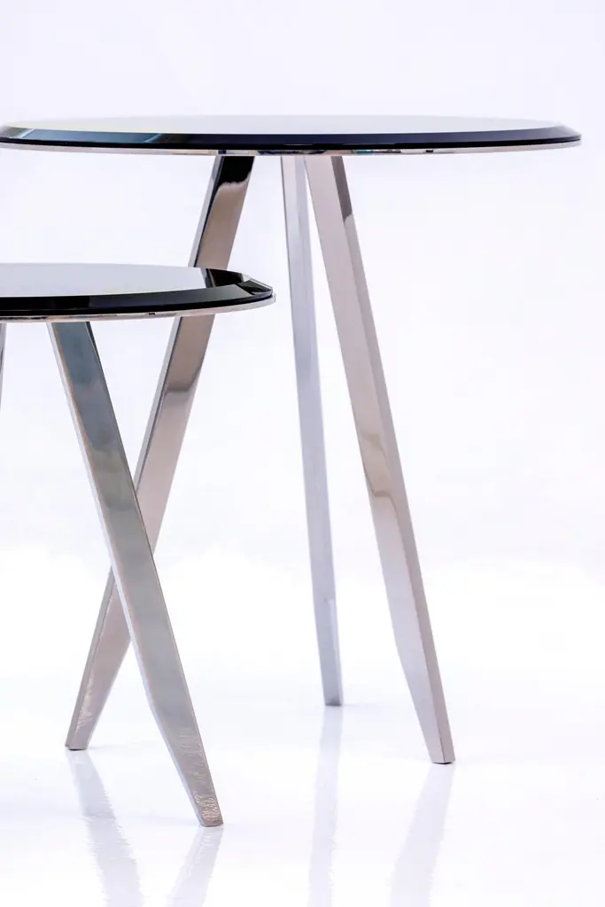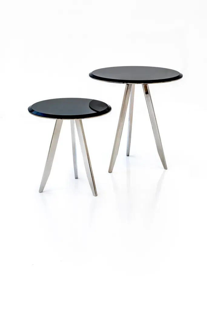 Mirage 50 Silver Chrome Frame And Fumé Mirror Side Table by Casa Casati Dimensions: Ø 50 x H 54 cm. Materials: Brass and fumé mirror.Available in different materials and size options. Please contact us.A set of small circular side tables, available in different heights and diameters. Three slim legs tapering to a point, a slight reference to the 50’s, sustain a slim flying disk of metal, on which rests, perfectly balanced, a top in marble with a tapered border. The variety of marbles present in theCASA CASATI collection, and the richness of the metal finishes available, from the Light and Dark Bronze to the Gold, Silver and Midnight chromes, allows for a great number of combinations, from a minimal, monochromatic interpretation to others more expressive and decorative.Atelier Casa Casati. Italian Lifestyle. Italian Skill. Italian Furniture.Excellence of materials, love of detail, creativity. This sums up the design philosophy of CASA CASATI. The atelier was created in 2016 by architects Bosco Fair and Emanuele Genuizzi, who, following years of experience in the field of interior and product design, bring to this project the cultural and aesthetic values of the highest Italian tradition. A tradition that takes form thanks to the work of the most qualified artisans of Brianza. It is in their hands that the “Italian Dream” becomes reality. It’s their skill which gives life to unique pieces, characterized by precious materials, sophisticated finishes, and unusual combinations which never fail to surprise. Thanks to the use of natural materials and expert manual labour, each of the CASA CASATI pieces has its own ethos, showing specific characteristics which highlight their value as unique pieces. Special interior projects and limited edition pieces can be developed upon request.CASA CASATI: classic elegance and a contemporary aesthetic mix together to create something indisputably of its time.