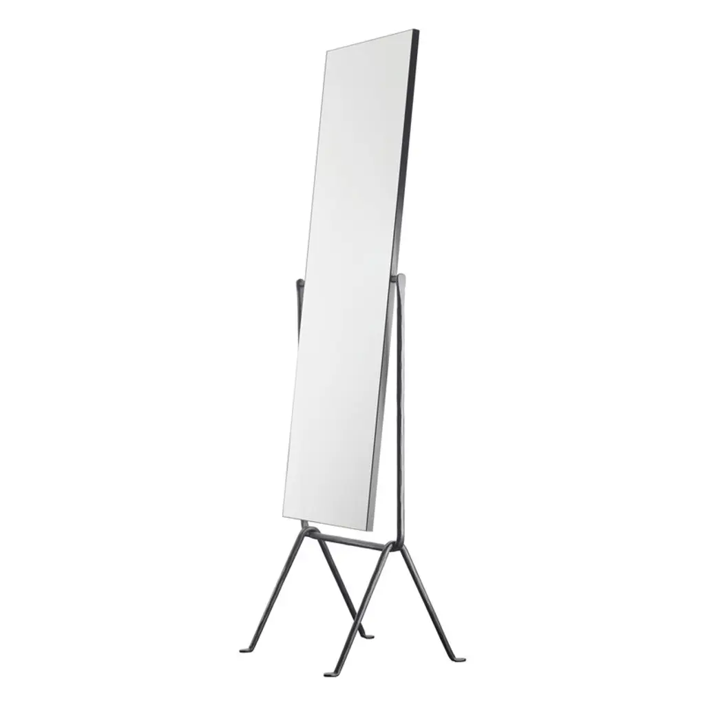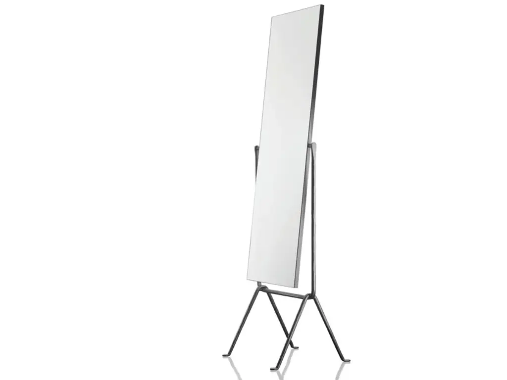Mirror is free-standing and two-sided, with an adjustable tilt. Designed by Jasper Morrison, the base and frame are made of satined nickel.