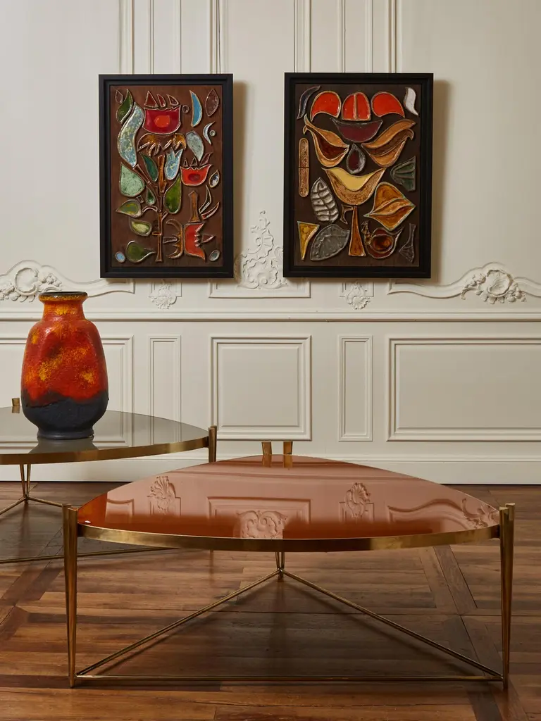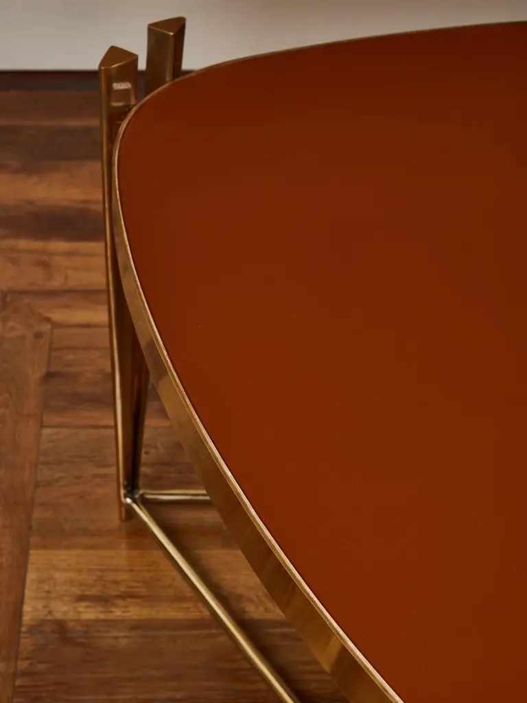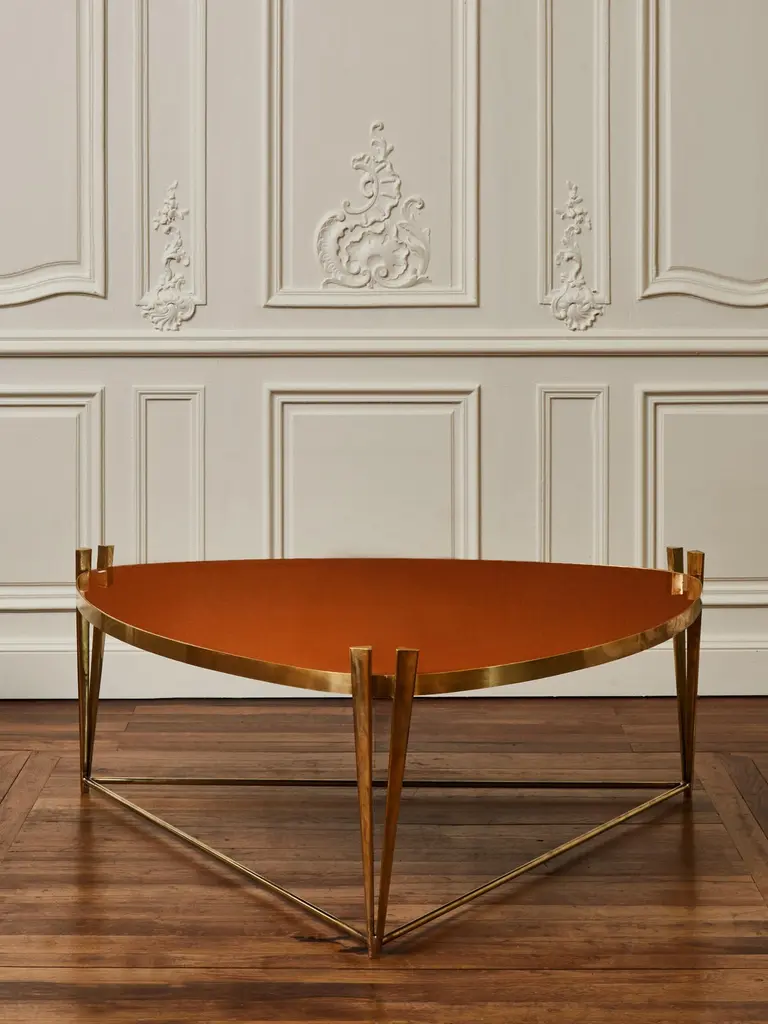 Beautiful coffee table in brass with top in tainted mirror.A different can be ordered.(Lead time: 6-8 weeks).Creation by Studio Glustin.