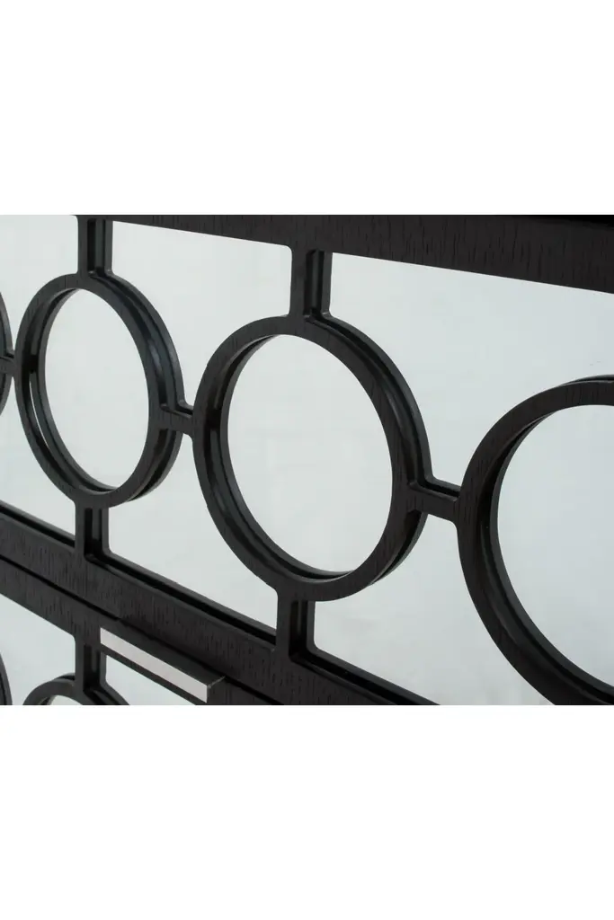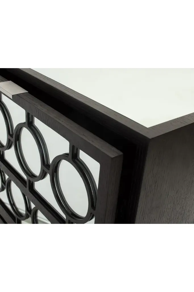 Classic Deco-inspired design meets contemporary craftsmanship and styling to create the elegant Marriott Bedside Table. Featuring a richly textured Oak veneer with solid wood legs in our Wenge Oak Finish, the top and drawer fronts are applied with mirrored panels and intricate circular fretwork detailing offering generous storage.Soft closing Drawers.