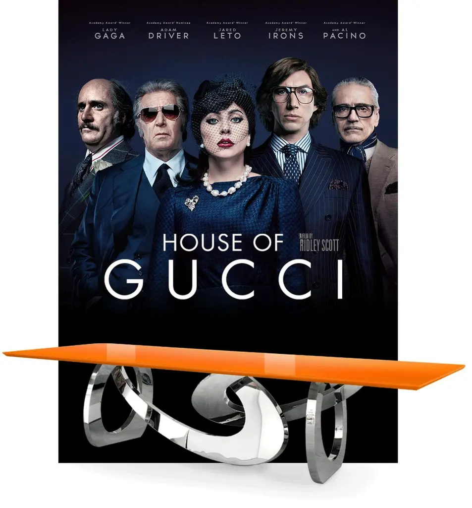The table 'Bangles' is an important dining table with structure in mirror polished stainless steel and top in Amaranth solid wood ( Purpleheart solid wood ). Every single bangle is welded and highly polished by hand. The mirror-like finishing of the steel creates different perceptions of this particular material and allows interesting reflections of light.Our sculptural 'Bangles' dining table was chosen by Ridley Scott for his film 'House of Gucci' starring Lady Gaga, Al Pacino, Adam Driver, Jeremy Irons, Salma Hayek, Jared Leto.Dining table dimensions: L 250-350 x W 120 x H 76 cm. Dimensions are customizable.Limited Edition of 15.Each table is hand signed and numbered by the artists (engraved), 100% handmade in Italy and comes with a “Certificate of Authenticity”.The artworks by Barberini & Gunnell are regularly shown at international art fairs, such as PAD London, PAD Genève, PAD Monaco, Salon Art and Design New York, ArtMiami.IMPORTANT INFORMATION REGARDING SHIPPING:Please contact us for an independent shipping quote as we provide high quality shipping at competitive prices due to our frequency of shipping, relations with international shipping companies and the possibility to organize directly from Italy.We take care of the entire customs procedure and paperwork. On request we organize a white glove delivery and installation of the artwork inside of the property of the client. All shipments are ALL-RISK insured.We carefully pack all artworks in strong wooden crates to ensure safe transport. This service is done directly in our atelier and is complimentary. All of our artworks travel with a shock watch system in order to monitorate rough handling by shippers and movers.