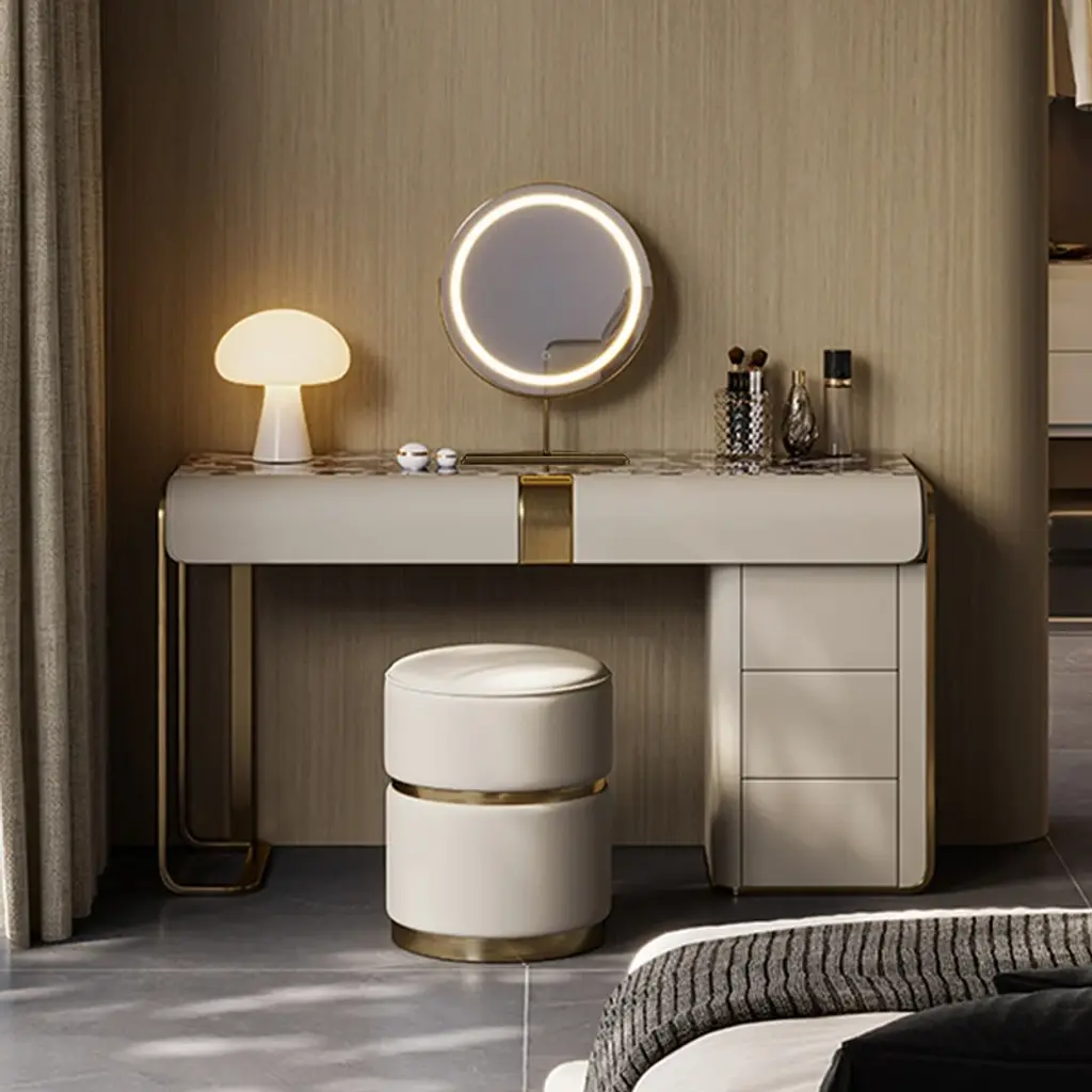 Modern Gray Makeup Vanity Set With Side Cabinet Dressing Table With Mirror & Stool