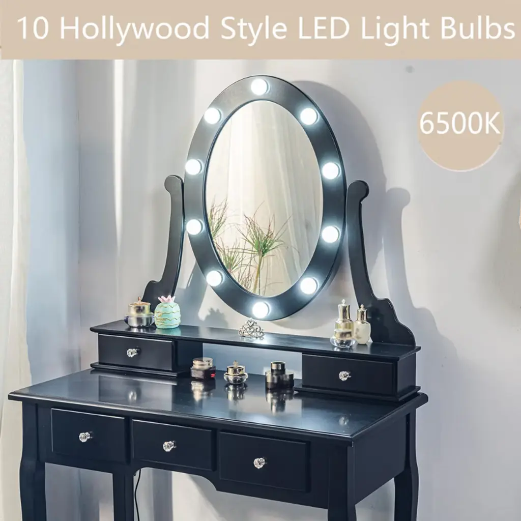 Modern Makeup Vanity, Girls Vanity Set With Lighted Mirror And Cushioned Stool