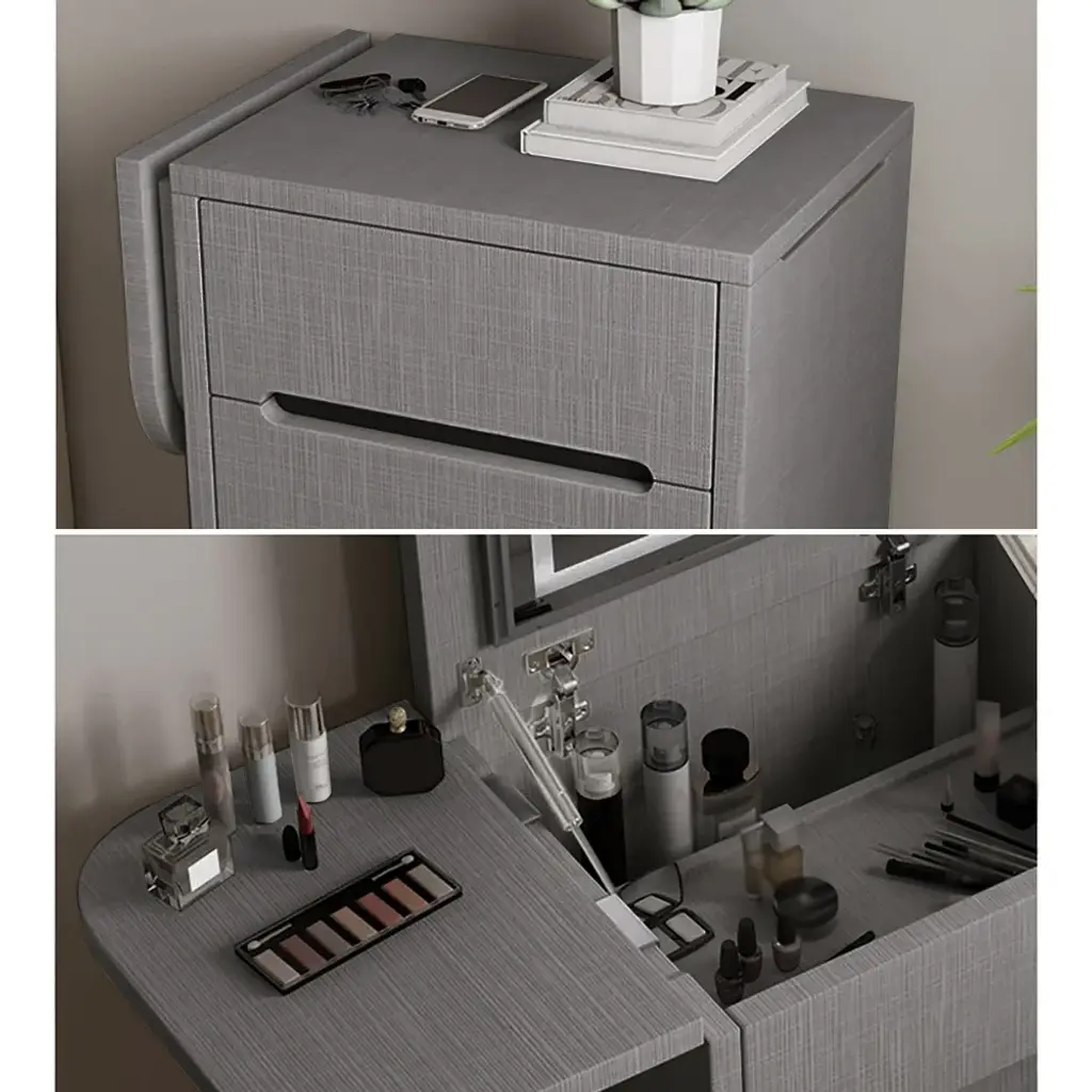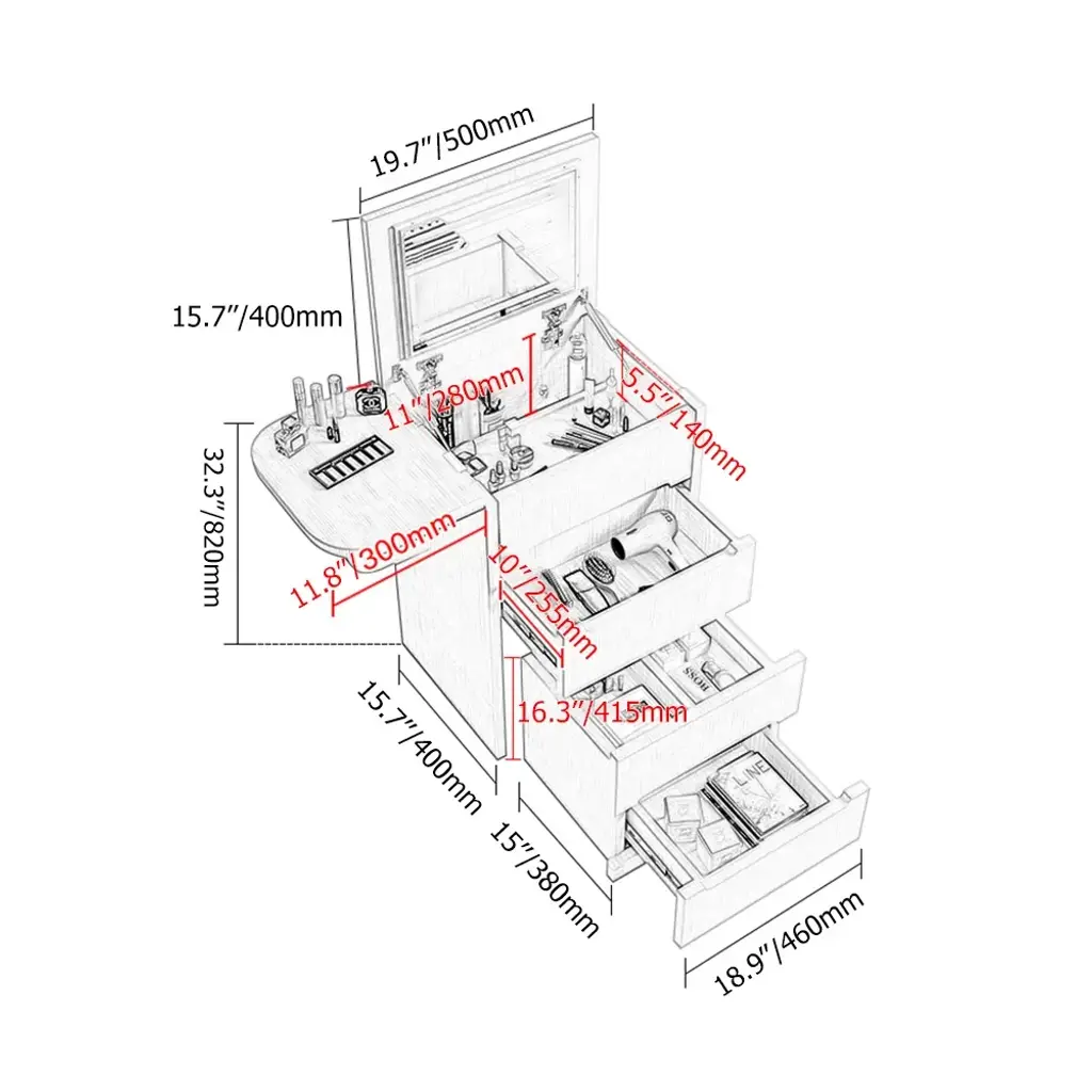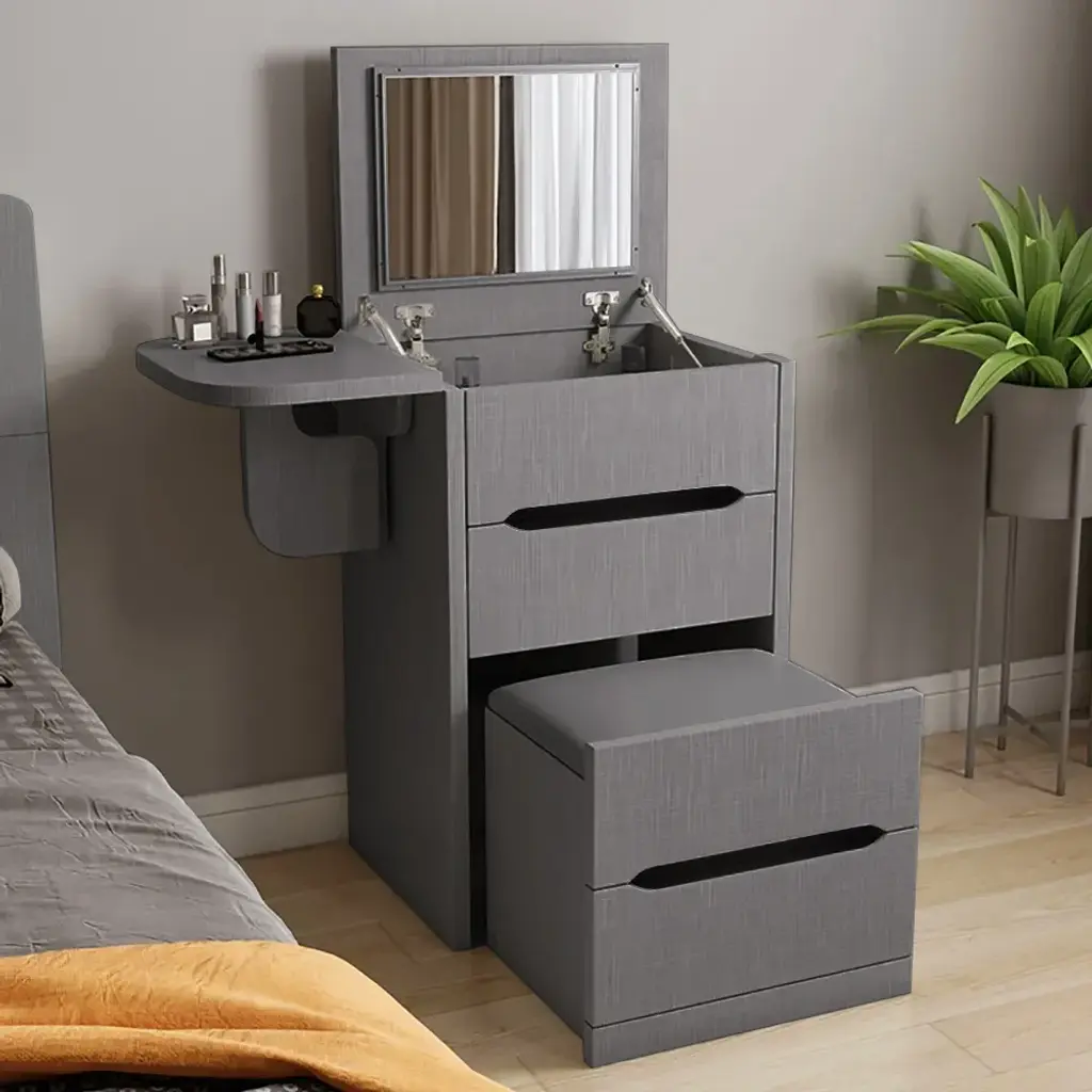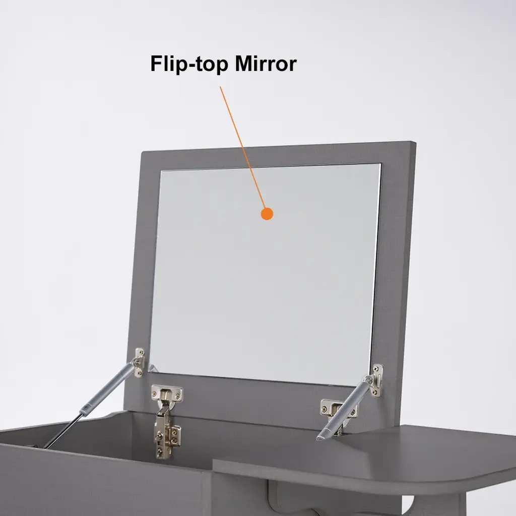 Nordic and functional, this makeup vanity set is an ideal addition to your room. Featuring a flip-top mirror and several compartments, it helps organization convenient and keeps items handy. Come with a drawer and a storage stool, this vanity offers ample storage space for your articles of daily use. When you don't need makeup to close it, it can instantly transform into a desk, bedside table, and storage table for your multi-purpose use. Made of MDF and stainless steel, this makeup vanity table set ensures long-lasting use and beauty.