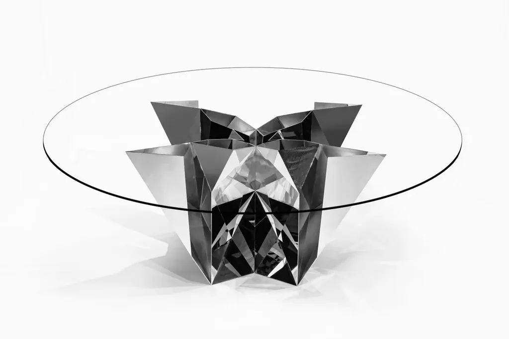 Object #Mt-F2-S Mirror Polished Stainless Steel Table By Zhoujie Zhang