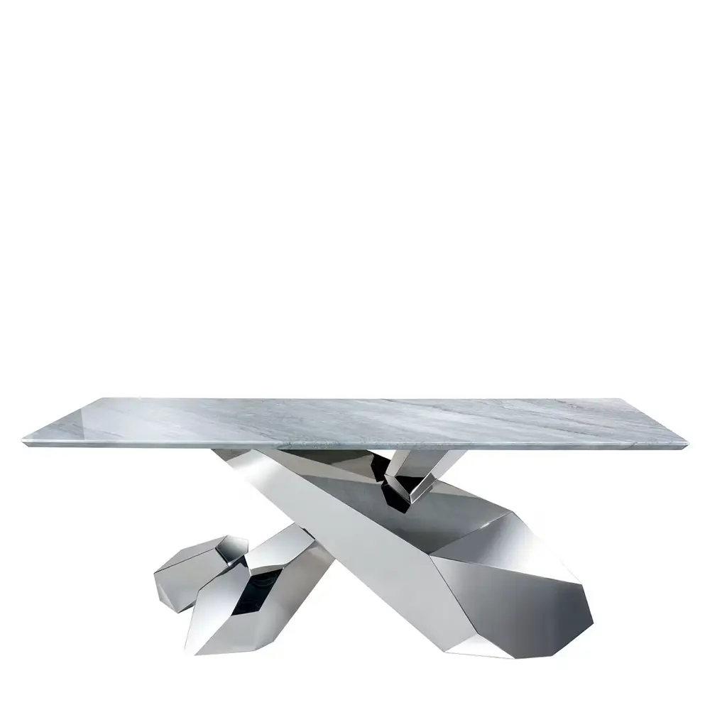Object #Mt-F3-S Mirror Polished Stainless Steel Table By Zhoujie Zhang