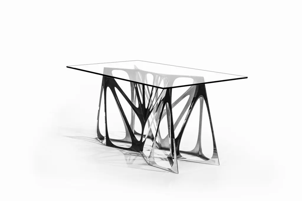 This elegantly designed table was created with handmade digital crafts, the same fabrication techniques devised in Zhoujie’s digital laboratory. The work's digital roots lend an architectural and minimal aesthetic not commonly found at this scale.With his practice dedicated to the development of a digitalized fabrication system, Zhoujie’s goal has been to create a system with an ability to transform digital programs into real objects. In the near future, people will be able to participate in the creation; design a customized chair through the digital system and select different materials of their choice. This brand new, artificial intelligence design concept will fit better into the life and preferences of each individual and the interaction between product and human will be deepened. The process of design will evolve from single physical phase to a systematic level.