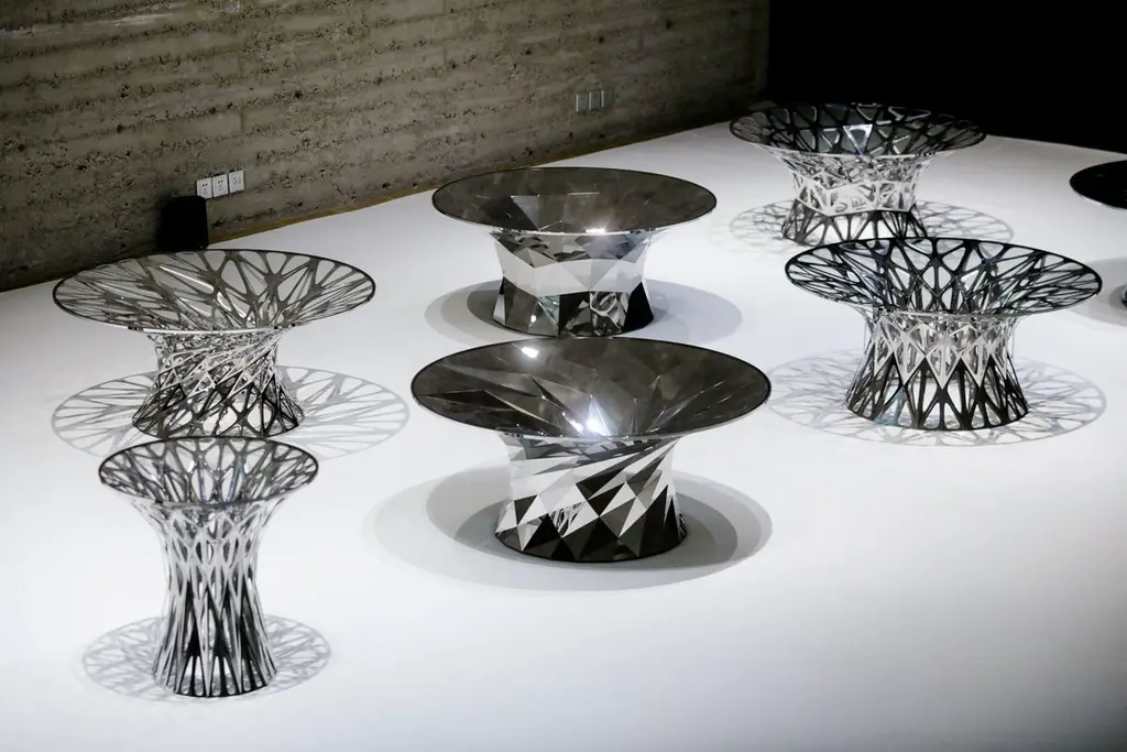 This elegantly designed table was created with handmade digital crafts, the same fabrication techniques devised in Zhoujie’s digital laboratory. The work's digital roots lend an architectural and minimal aesthetic not commonly found at this scale.With his practice dedicated to the development of a digitalized fabrication system, Zhoujie’s goal has been to create a system with an ability to transform digital programs into real objects. In the near future, people will be able to participate in the creation; design a customized chair through the digital system and select different materials of their choice. This brand new, artificial intelligence design concept will fit better into the life and preferences of each individual and the interaction between product and human will be deepened. The process of design will evolve from single physical phase to a systematic level.