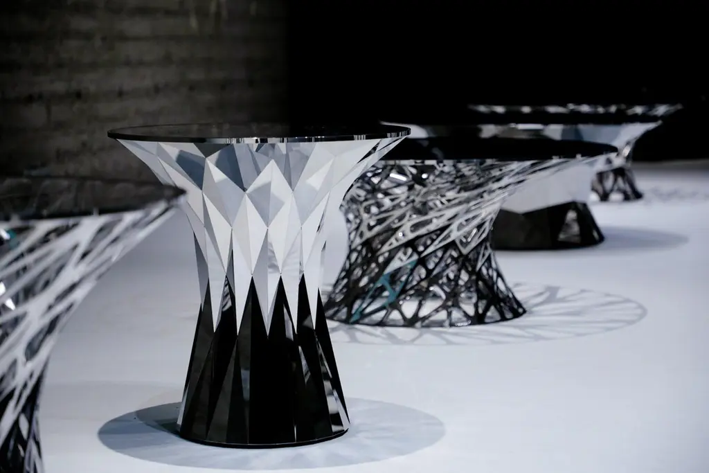 This elegantly designed table was created with handmade digital crafts, the same fabrication techniques devised in Zhoujie’s digital laboratory. The work's digital roots lend an architectural and minimal aesthetic not commonly found at this scale.With his practice dedicated to the development of a digitalized fabrication system, Zhoujie’s goal has been to create a system with an ability to transform digital programs into real objects. In the near future, people will be able to participate in the creation; design a customized chair through the digital system and select different materials of their choice. This brand new, artificial intelligence design concept will fit better into the life and preferences of each individual and the interaction between product and human will be deepened. The process of design will evolve from single physical phase to a systematic level.