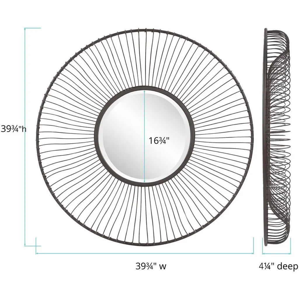 Urban decor has often taken its lead from industrial elements of the past. Our Othello Mirror features intricate detailing of radiating wires fashioned from iron into a round, sunburst design. The graphite finish blends to create this unique, industrial look. This collection is so versatile that many of our accent tables and decorative accessories can easily be paired up to make a statement. Keyhole slots are manufactured into the back of the mirror so the piece is ready to hang right out of the box.