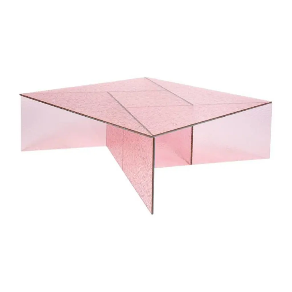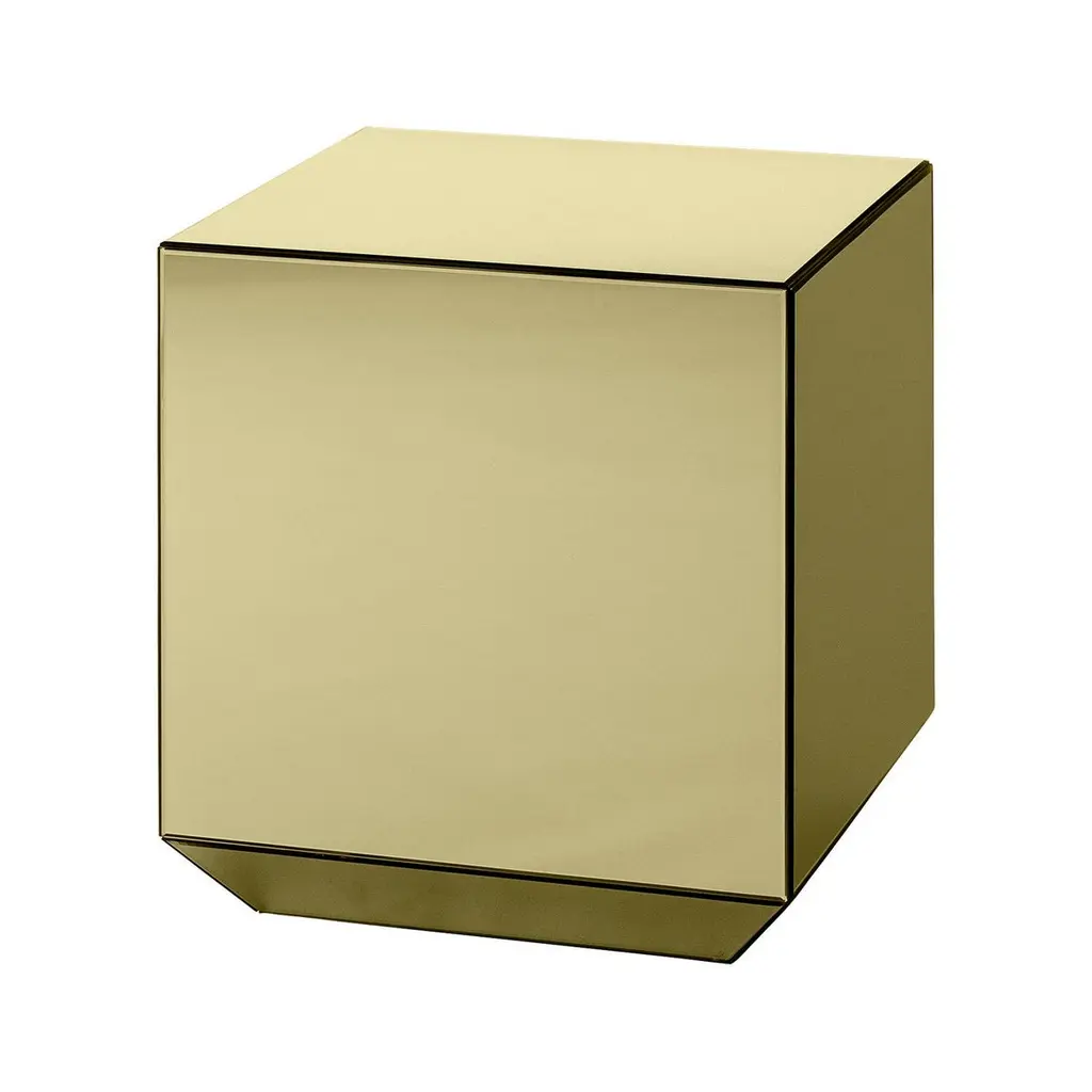 Pink glass mirror tableDimensions: L 38 x W 38 x H 40 cmMaterials: Glass, MDFA simple box shape is made much more interesting with mirrors covering its surface.Add colors to the mixture and the result will be even more interesting. Comes in grey, gold and rose mirror.