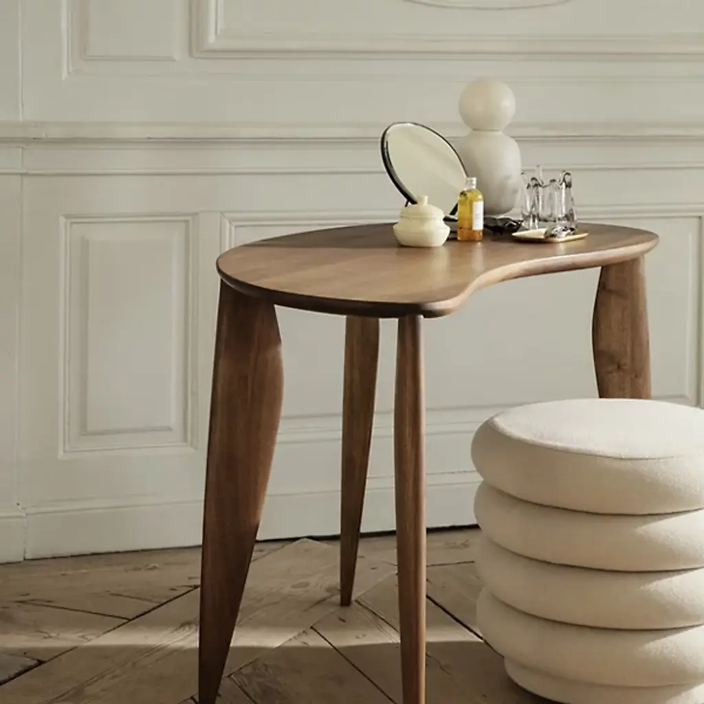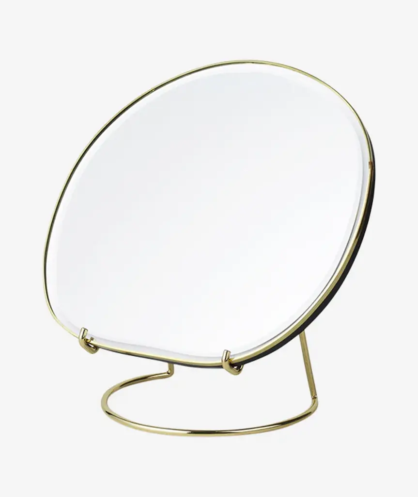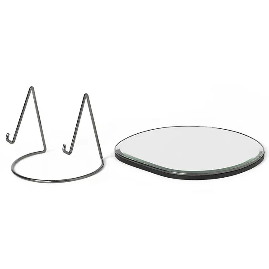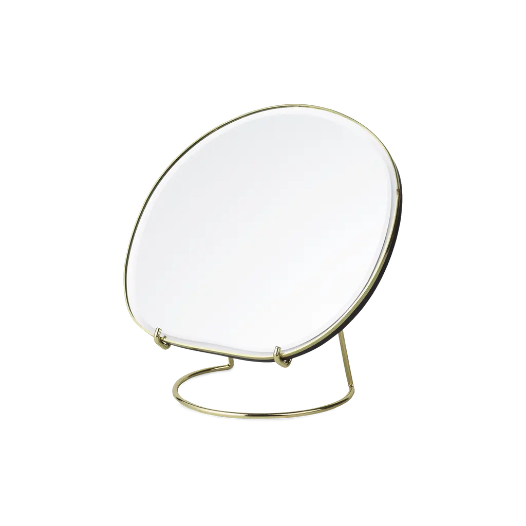 The Pond Table Mirror from Ferm Living shows how everyday objects can incorporate natural forms while maintaining their basic purpose. The asymmetrical shape sits on a removable metal stand, allowing for various positioning options. MDF backing supports the mirror glass, while a brass-plated zinc frame provides clean edges. The design adapts to different settings—from dressing tables to bathroom counters. The detachable stand allows for different display options or easy storage.