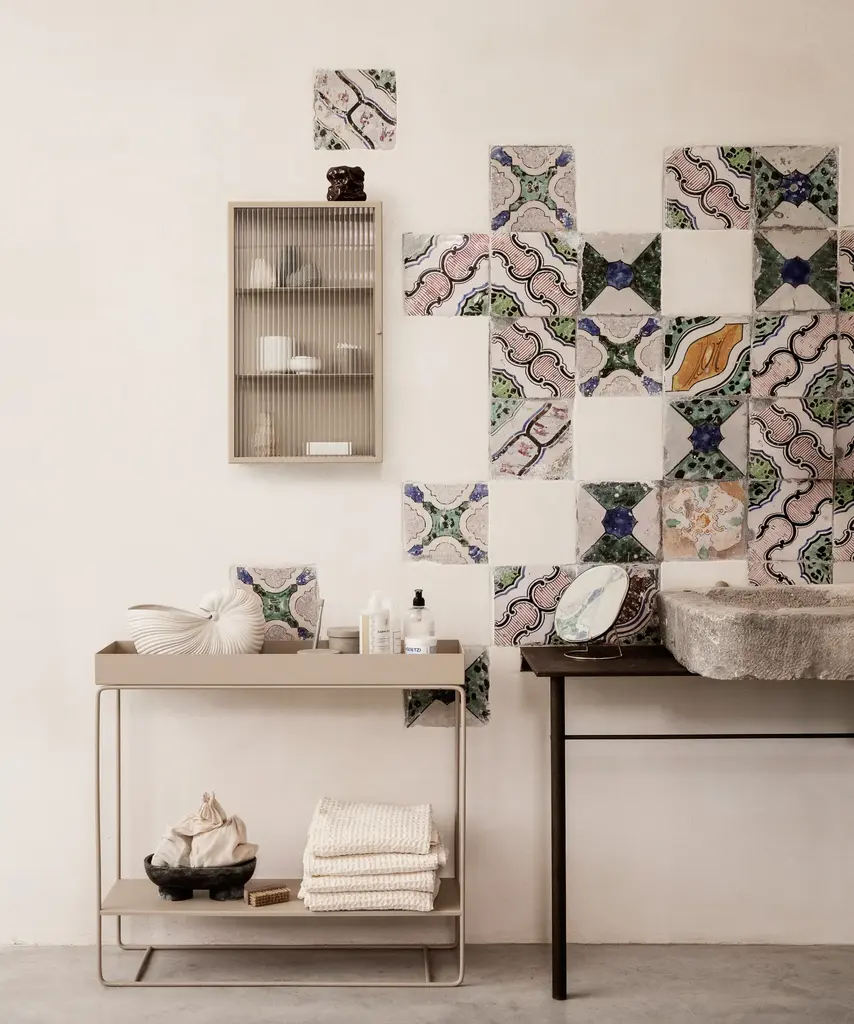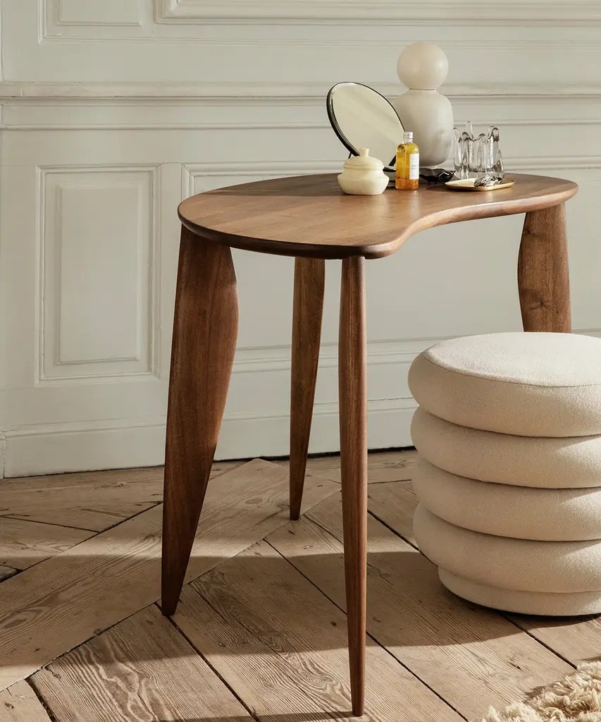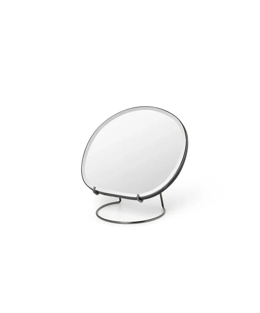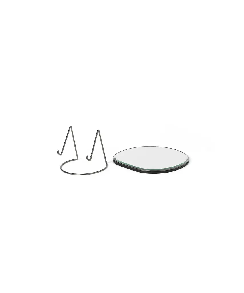 Set on a slender, detachable metal stand, our shape-shifting Pond mirror is cut in an asymmetrical silhouette for an intriguing take on a classic design. Inspired by free-flowing movements of water, the organically-shaped mirror is made to sit on any surface – from a bedroom dressing table or hallway console to a bathroom shelf – it is an elegant way to reflect your daily routine. Designed and produced by the Copenhagen-based studio Ferm Living.