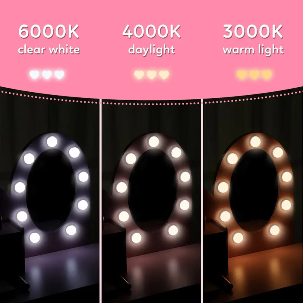 Give your little princess a magical space with this kids' vanity set, including a sturdy MDF desk, stool, and wooden makeup playset. Designed with round edges and odorless paint, it meets ASTM and CPSIA safety standards. The touch-light mirror, tabletop storage grids, and spacious drawer keep accessories organized and within reach. Sized perfectly for girls aged 4–9, it fits beautifully in bedrooms, playrooms, or living rooms. A thoughtful gift for birthdays or holidays, it inspires creativity and fun. Easy to assemble with clear instructions and reliable customer support.