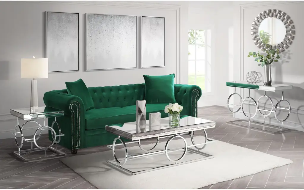 The Rehan Rectangle Mirrored Coffee Table will have you feeling like a queen in your living room!