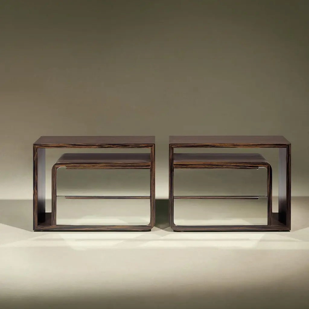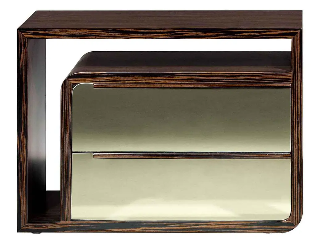Rose bedside or support table in ebony with two mirrored drawers (regular/ grey, gold /bronze).Bespoke / CustomizableIdentical shapes with different sizes and finishings.All RAL colors available. (Mate / Half Gloss / Gloss)