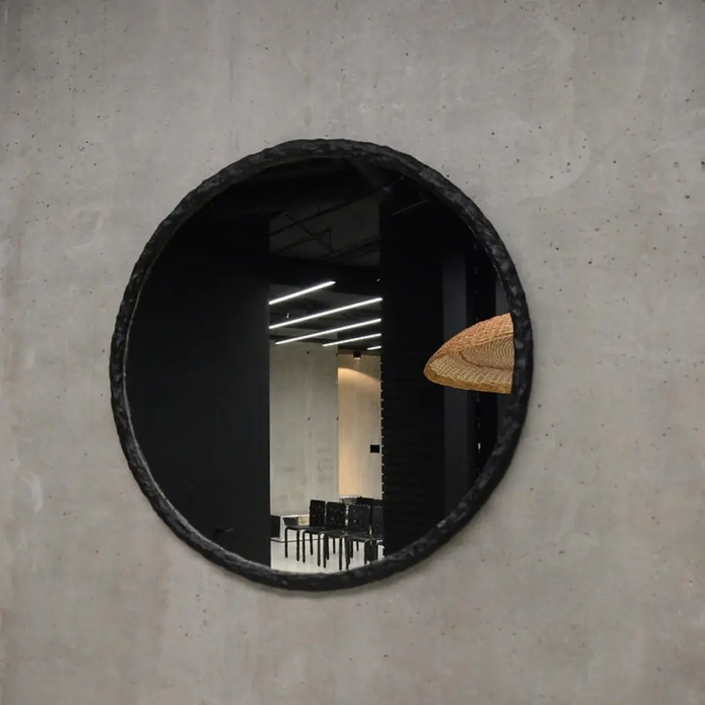 Round Mirror by FainaDesign: Victoriya YakushaMaterials: Steel, flax rubber, biopolymer, cellulose, wood materials, mirrorDimensions: D 80 cmIn search of new-old design messages, Victoria Yakusha conducted a study of the daily traditions of our ancestors. The times of Trypillia and the Scythian civilization, Slavs household habits, designer studied the forms, materials and craft techniques of those times and brought modern perusal to the traditional things.Awards Industart 2015 Award for PECHYVO cabinetArchiproducts Awards — SHCHEDRYY table nominatedAZ Awards Canada nominated SOLOD cabinet The Interior of the Year Award for ZTISTA chairExhibitions Solo2017Stockholm Furniture Fair: The collection had an individual Stand2018Milan Design Week: presented novelties at Superdesign Show 2018London Design Fair: has presented full collection.Group2015Bologna Design Week: first exhibition for the new Collection.2017Dutch Design Week: SOLOD ?abinet, HRYB coffee-table — participants of the exhibition.2018Paris Design Week: Bandura vase in the "1000 vases" Project by Roberto Bachiocci2019Stockholm Design Week: presented at the two TOP locations — "Fenix Palace" & "Temperament" exhibition by Sahara Widoff.2019Milan Design Week: KOROTUN table, BANDURA & MOTANKA vases featured in Studiopepe installation "Les Arcanistes — Future Un / written".