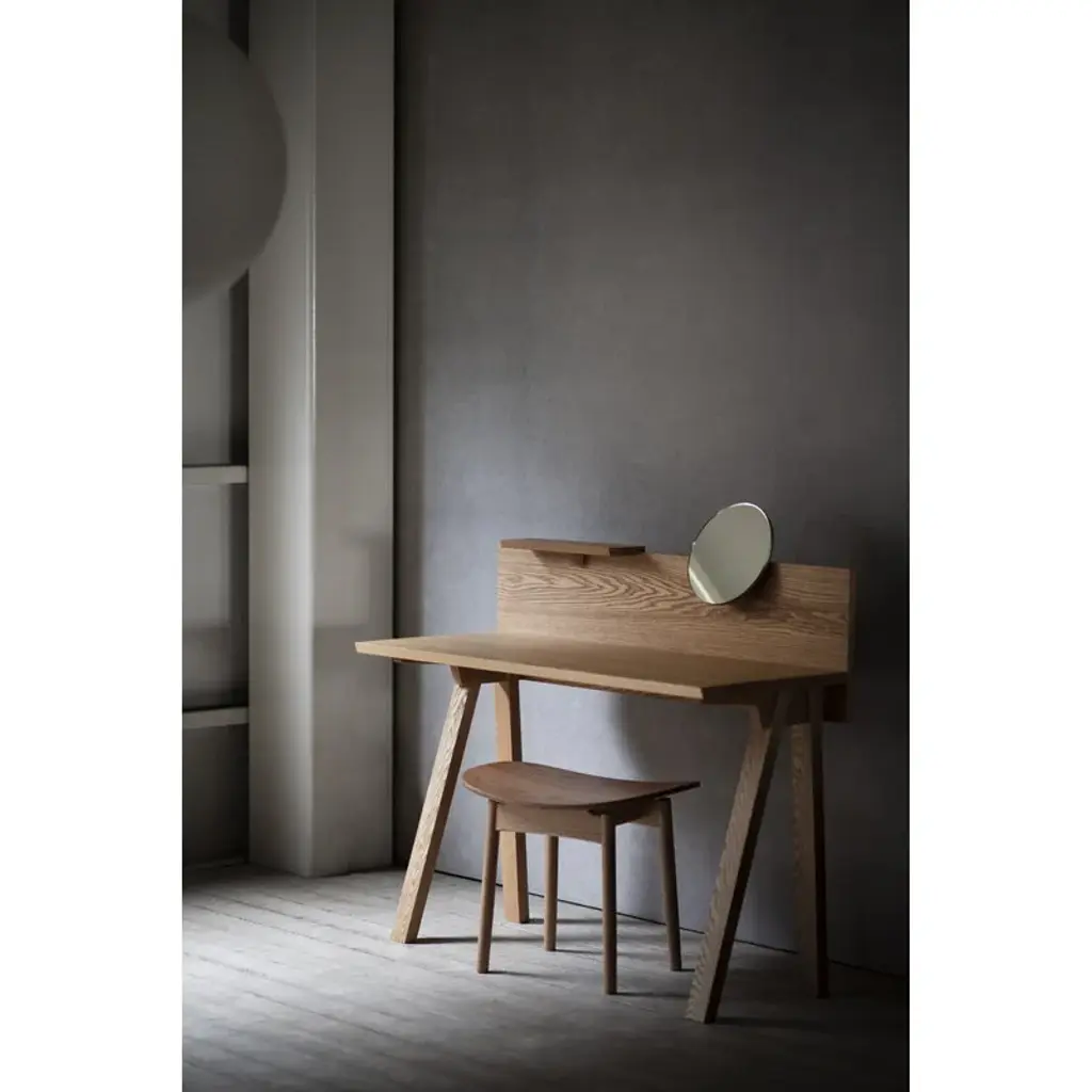The Sagyo mirror is designed for Ariake’s Sagyo desk. Attached with a magnet, the round mirror allows you to use your workstation also as a dressing table. The mirror is made of solid wood.