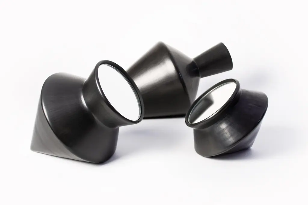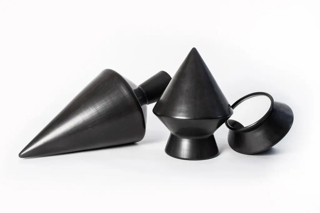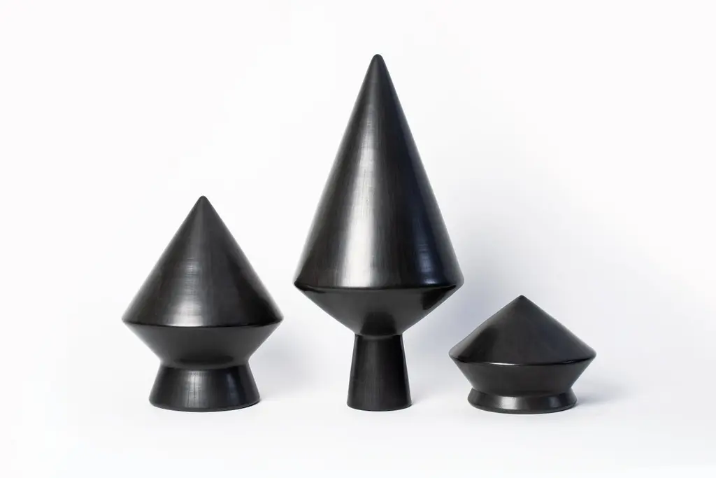 Set of 3 Nero 52 decorative object and mirror by Studio LievitoDimensions: D20 x W20 x H15 // D23 x W23 X H30 // D24 x W24 X H52 cmMaterials: Bucchero ceramic, mirror.Weight: 5.5 kgFragments of a distant time, shaped by hands and fire. Nero is an experiential interpretation of the bucchero ceramic technique. An exploration aimed at taking the material beyond its usual canons of aesthetics and use. Objects with an evocative shape that reveals more than one identity. Placed vertically they manifest all their sculptural elegance, while placed horizontally as a table mirror. Turned, fired and polished by hand in the historic workshops of Gubbio, the objects of the Nero collection are made of bucchero ceramic and mirrored glass.Studio Lievito is a design firm founded in 2010 by designers Laura Passalacqua, Francesco Taviani an Jacopo Volpi. Based in Florence, Studio Lievito stands out for its ability to delicately reinvent and redefine modern production techniques using traditional crafting methods. Each piece is meticolously handmade: with its collection Studio Lievito wants to promote a ‘slow design’ that subverts conventional decor norms by means of simple yet witty gestures and accurate detailing.