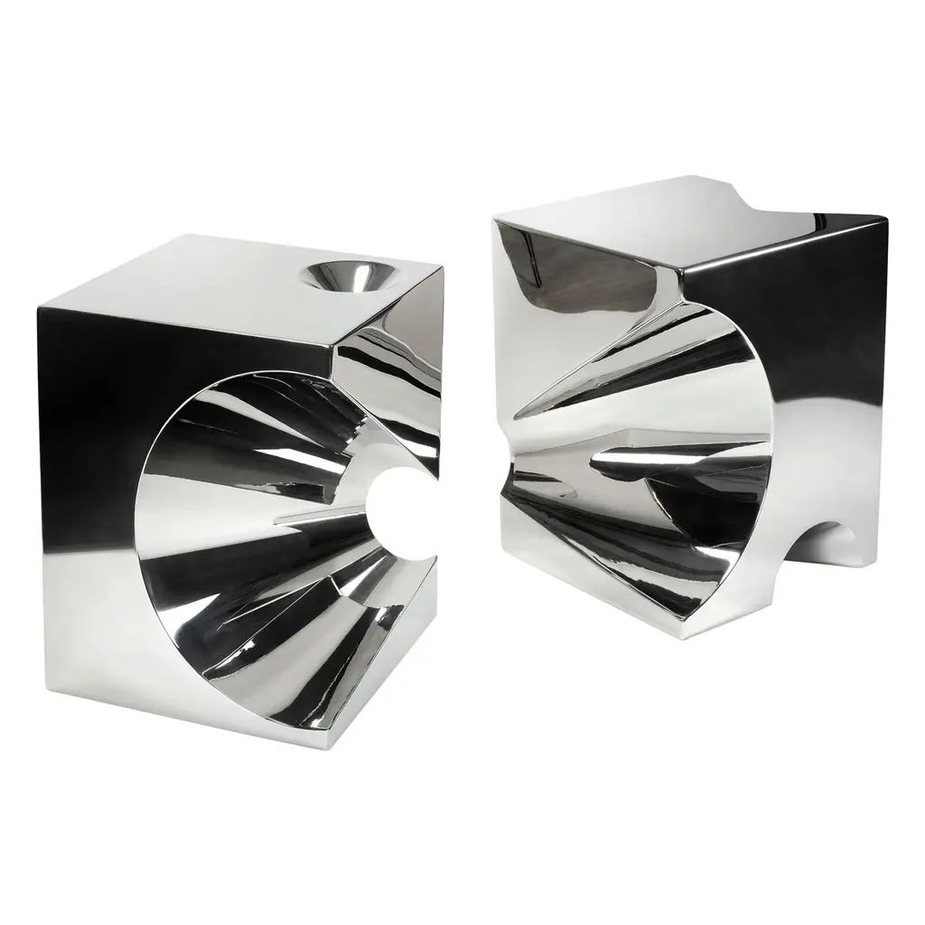 Side Or End Table Abstract Sculpture Gold Mirror Steel Cube Collectible Design