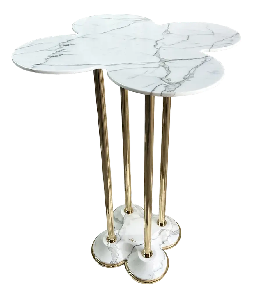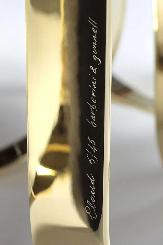 The 'Cloud' is a spectacular side table with structure in mirror polished brass and top in Paonazzo marble, origin: Tuscany. The mirror-like finishing of the brass creates different perceptions of this particular material and allows interesting reflections of light.Side table dimension: L 73, W 54, H 50cm. Dimensions are customizable.Limited Edition of 45. Each table is hand signed and numbered by the artists (engraved), 100% handmade in Italy and comes with a “Certificate of Authenticity”.We wanted to kidnap a cloud, slice it into thin sheets like it's done with blocks of marble.After, we take the central slab with the most beautiful pattern.To keep the cloud from escaping, we tied it on to weights, disguising them as light, golden legs.Now, that the cloud is fixed to the ground forever we dressed her in the colour of orange onyx which rested for millennia in the depth of heavy mountains.The cloud has become a table and nobody will ever unmask it.The artworks by Barberini & Gunnell are regularly shown at international art fairs, such as PAD London, PAD Genève, PAD Monaco, Salon Art and Design New York, Art Miami.IMPORTANT INFORMATION REGARDING SHIPPING:Please contact us for an independent shipping quote as we provide high quality shipping at competitive prices due to our frequency of shipping, relations with international shipping companies and the possibility to organize directly from Italy.We take care of the entire customs procedure and paperwork. On request we organize a white glove delivery and installation of the artwork inside of the property of the client. All shipments are ALL-RISK insured.We carefully pack all artworks in strong wooden crates to ensure safe transport. This service is done directly in our atelier and is complimentary. All of our artworks travel with a shock watch system in order to monitorate rough handling by shippers and movers.